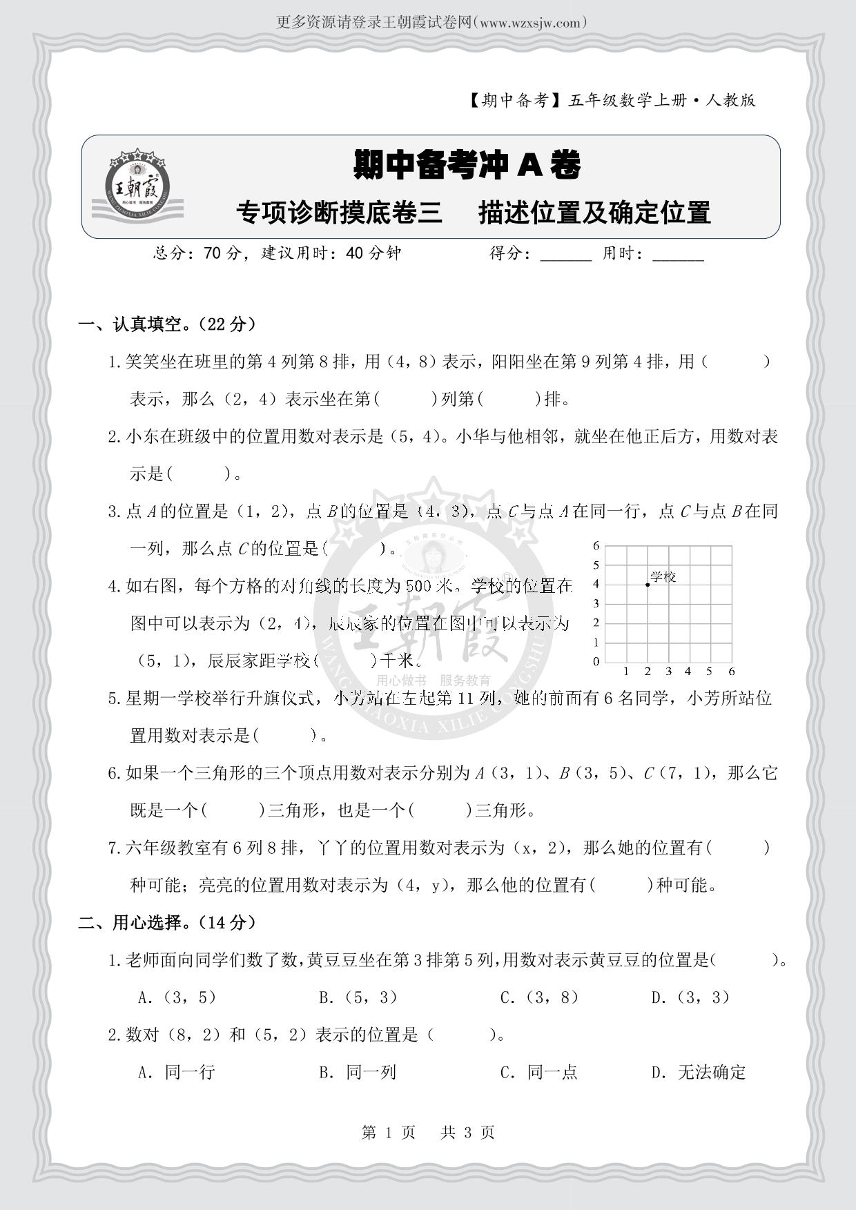 【期中备考】五年级数学上册人教版·专项诊断摸底卷三 描述位置及确定位置