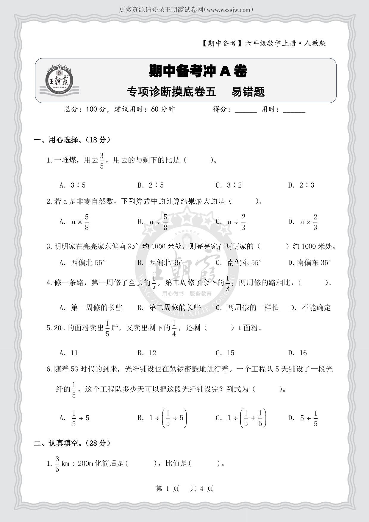 六年级数学人教版上册专项卷