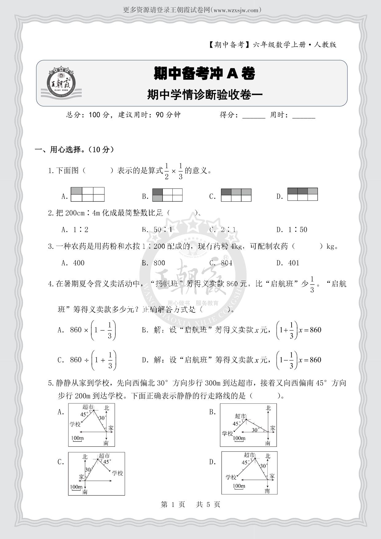 【期中备考】六年级数学上册人教版·期中学情诊断验收卷一