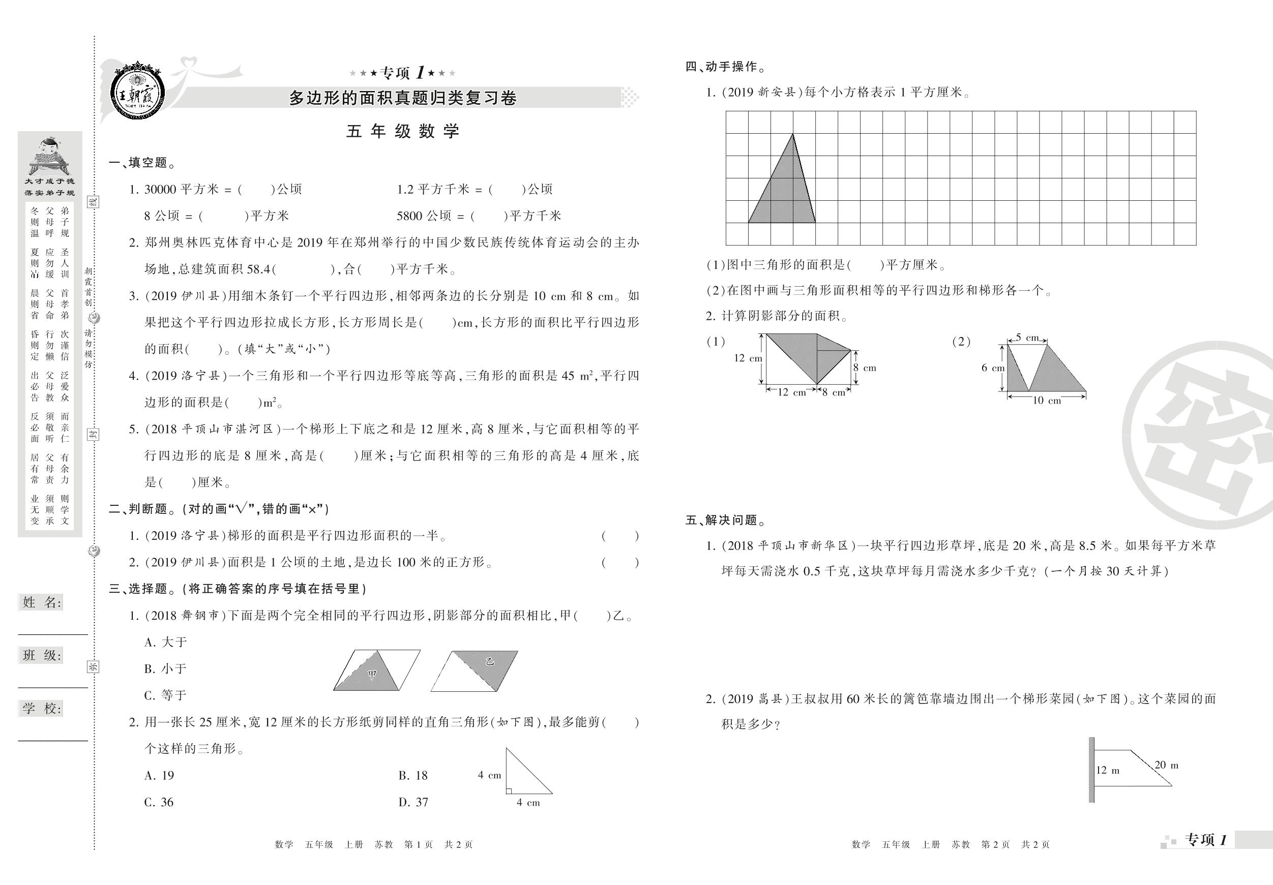 王朝霞期末专项卷——多边形的面积、小数的意义和性质真题归类复习五年级上册数学(苏教版)_R210804172811【0】