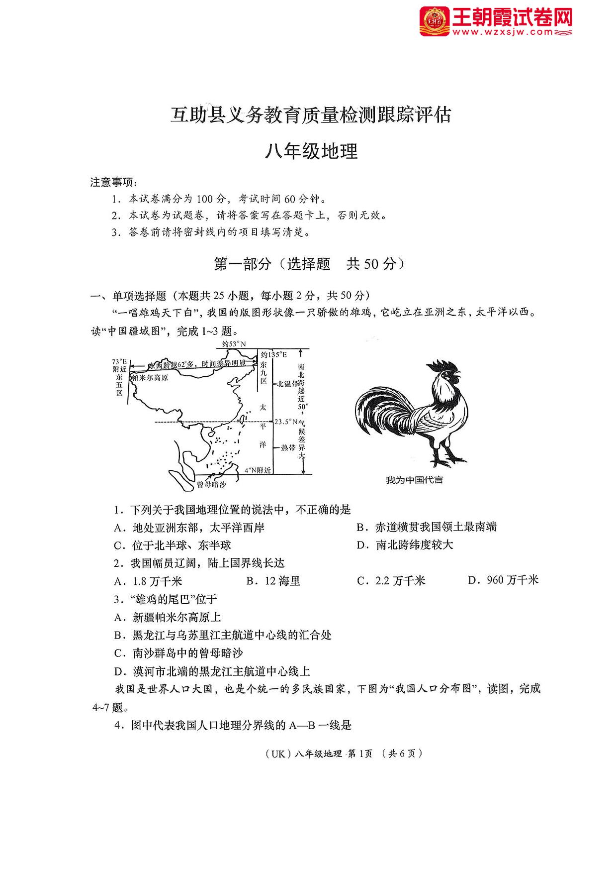 青海省海东市互助县2023-2024学年上学期期中义务教育质量检测跟踪评估八年级地理(人教版)
