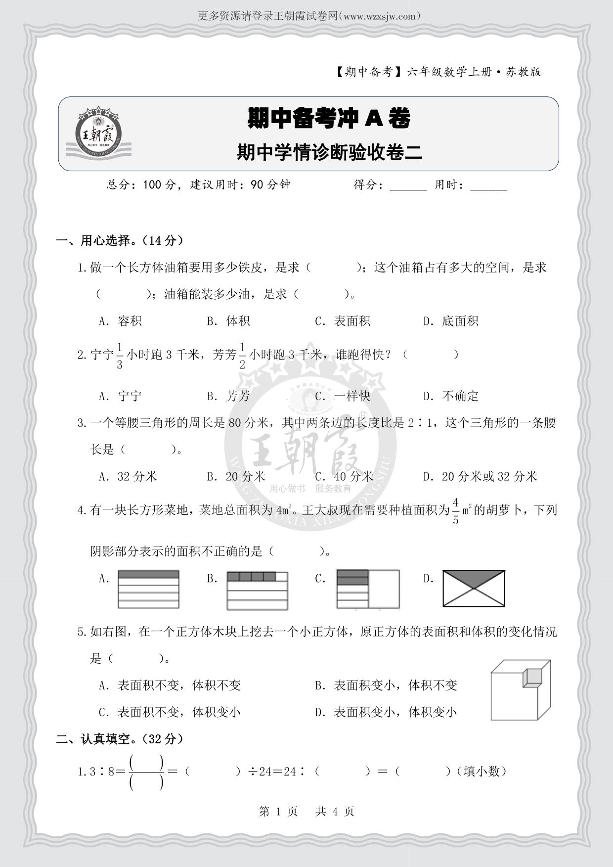 【期中备考】六年级数学上册苏教版·期中学情诊断验收卷二 _R241008103134582