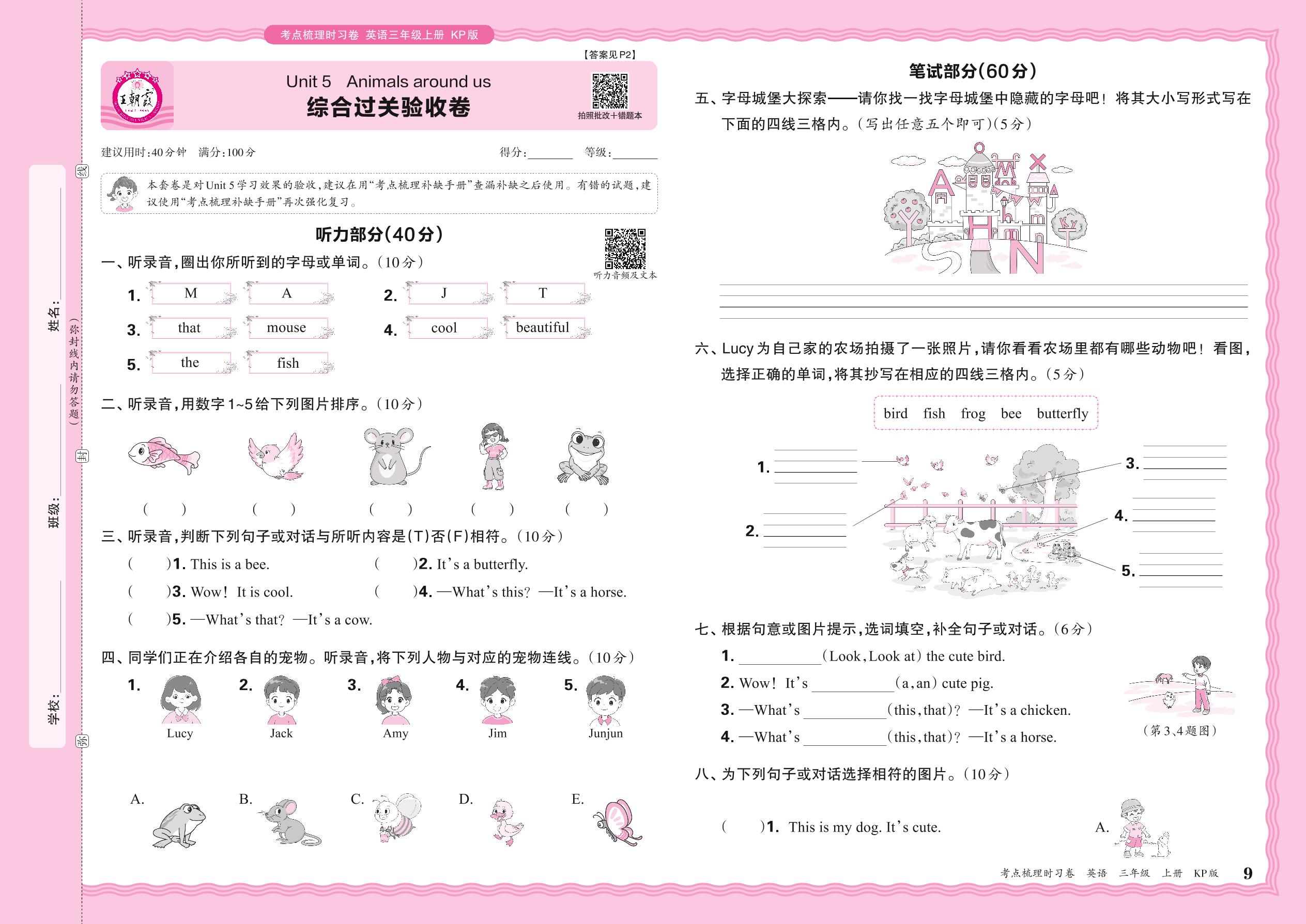2024秋上册三年级英语科普版 Unit 5 综合过关验收卷