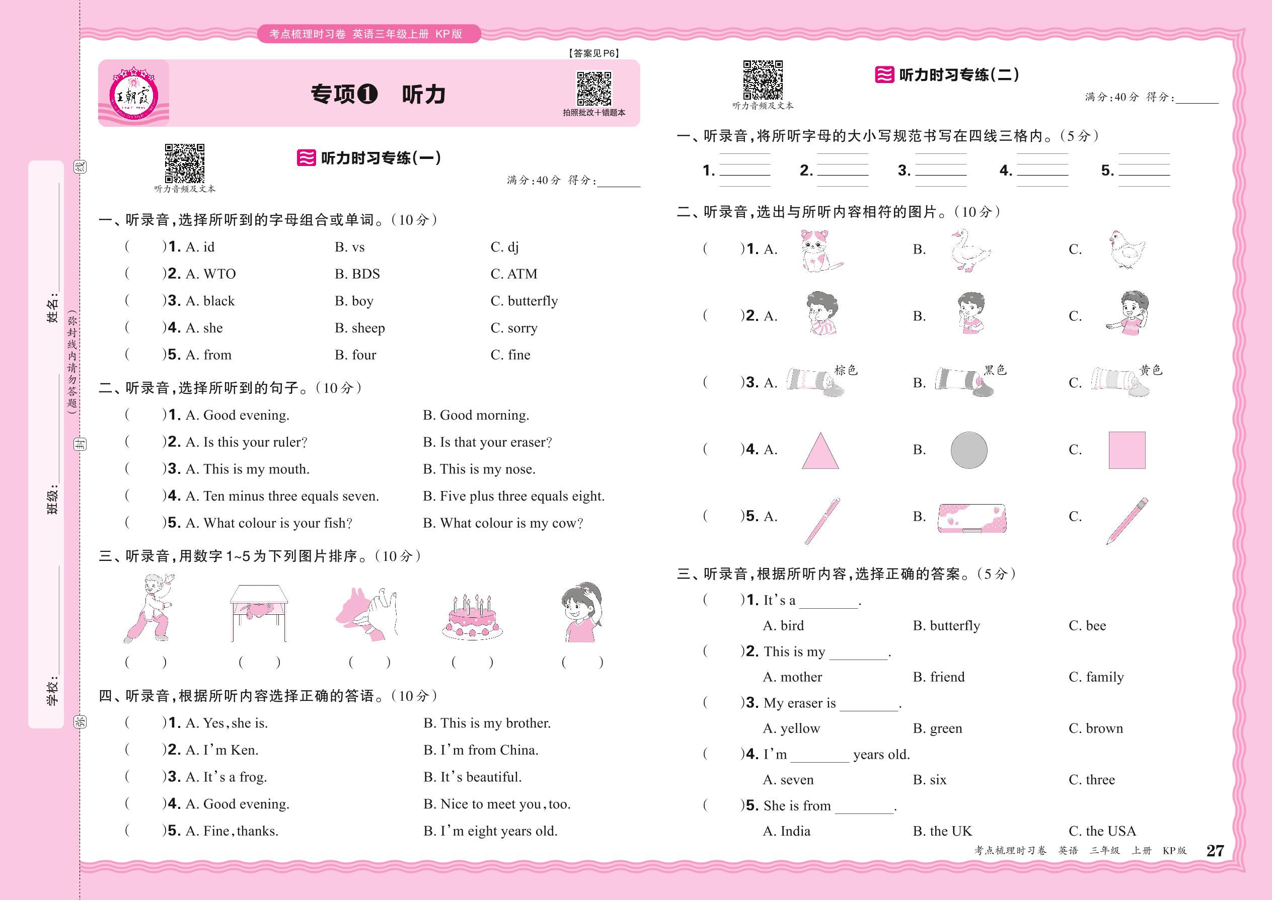 2024秋上册三年级英语科普版 期末专项卷PY版·听力【1】