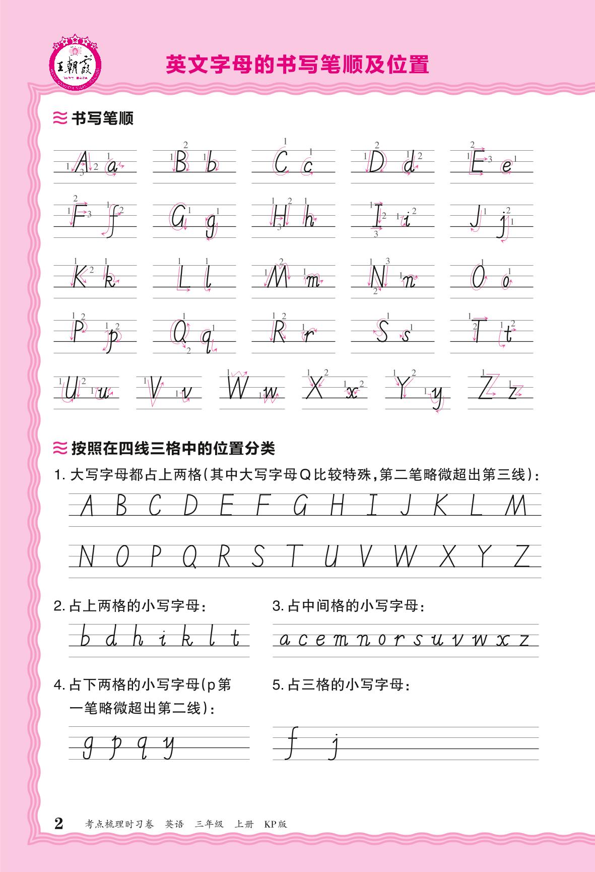 2024秋上册三年级英语科普版 考点梳理补缺手册——英文字母的书写笔顺及位置