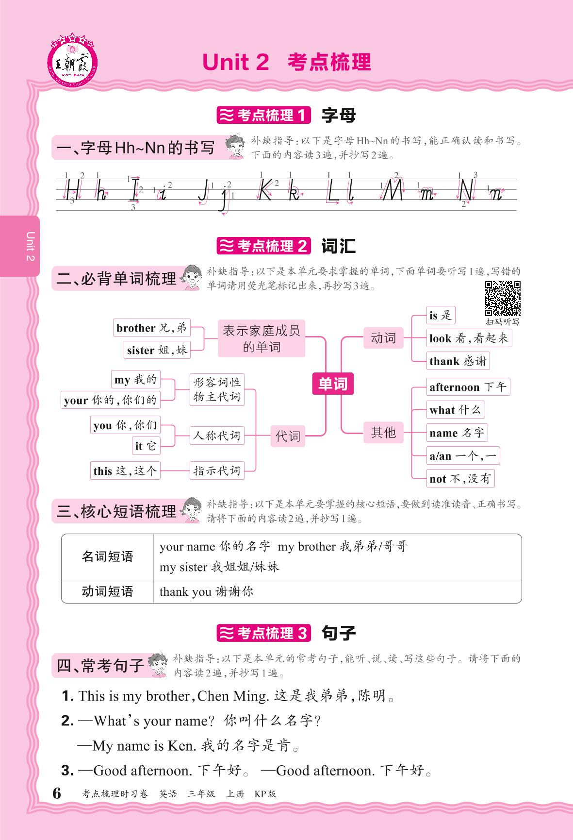 2024秋上册三年级英语科普版 考点梳理补缺手册——Unit 2