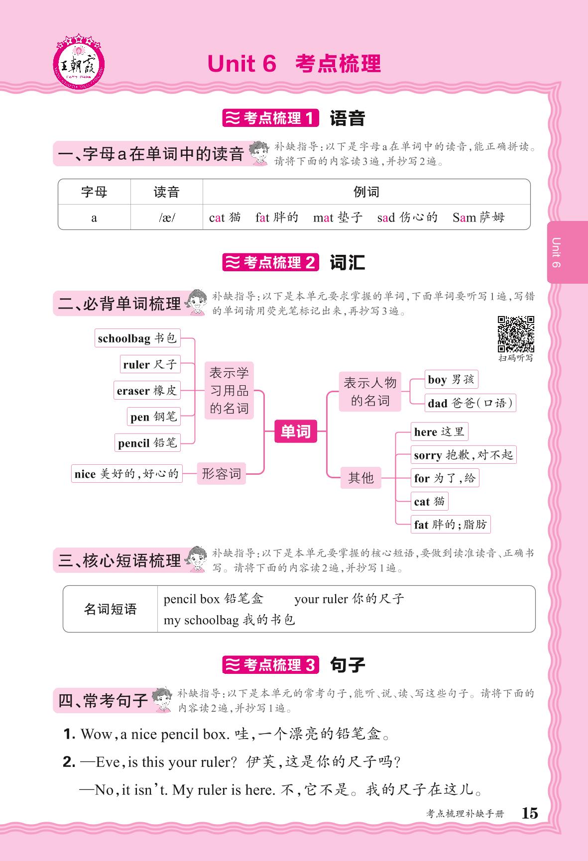 2024秋上册三年级英语科普版 考点梳理补缺手册——Unit 6