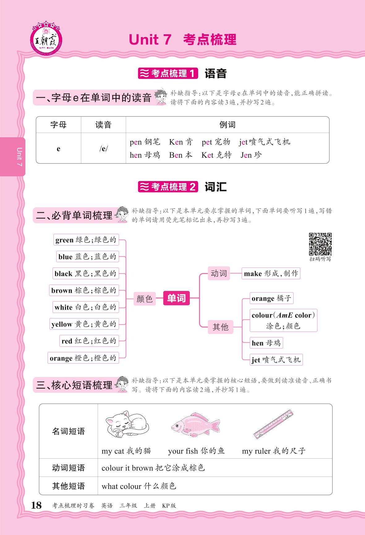 2024秋上册三年级英语科普版 考点梳理补缺手册——Unit 7