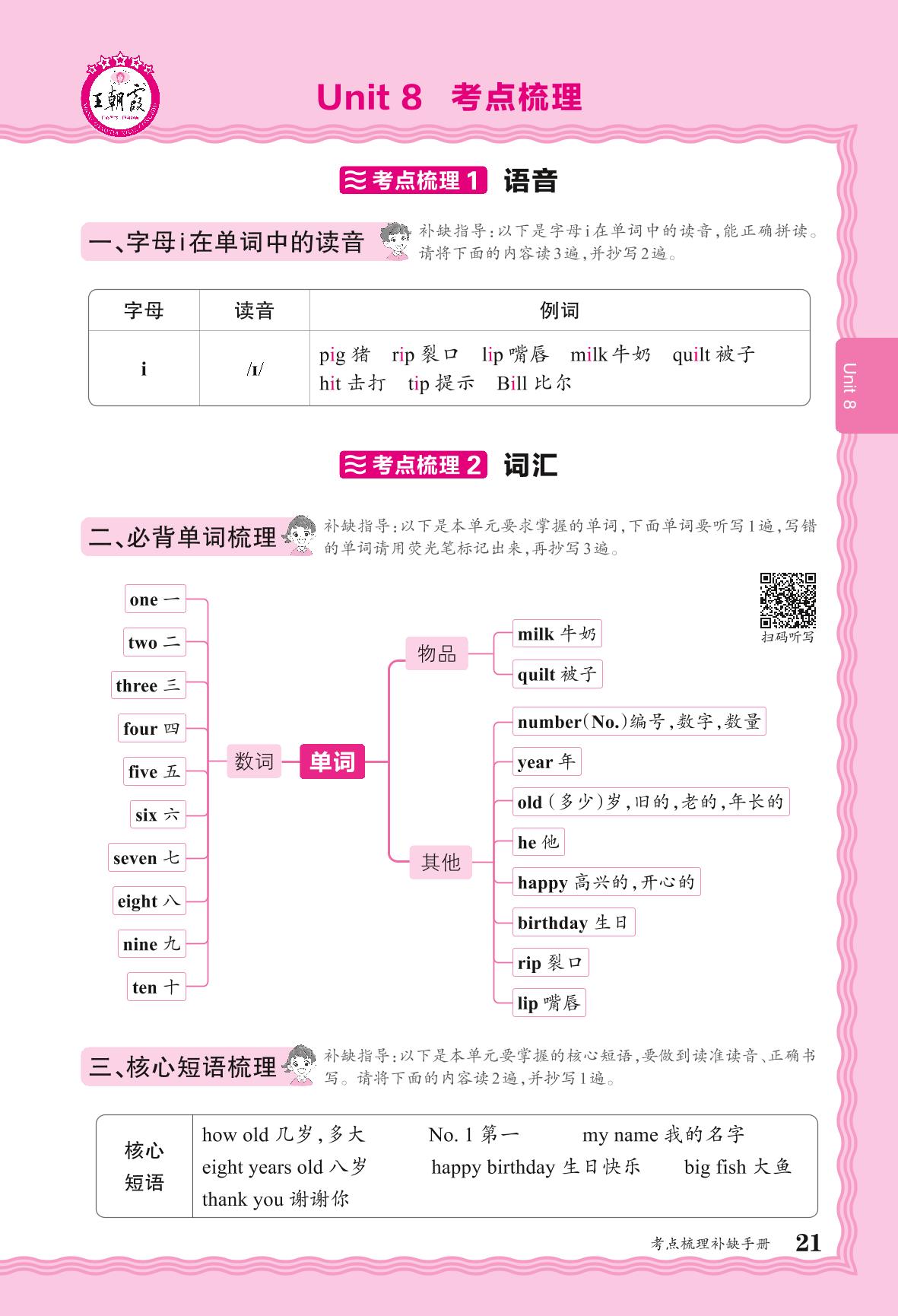 2024秋上册三年级英语科普版 考点梳理补缺手册——Unit 8