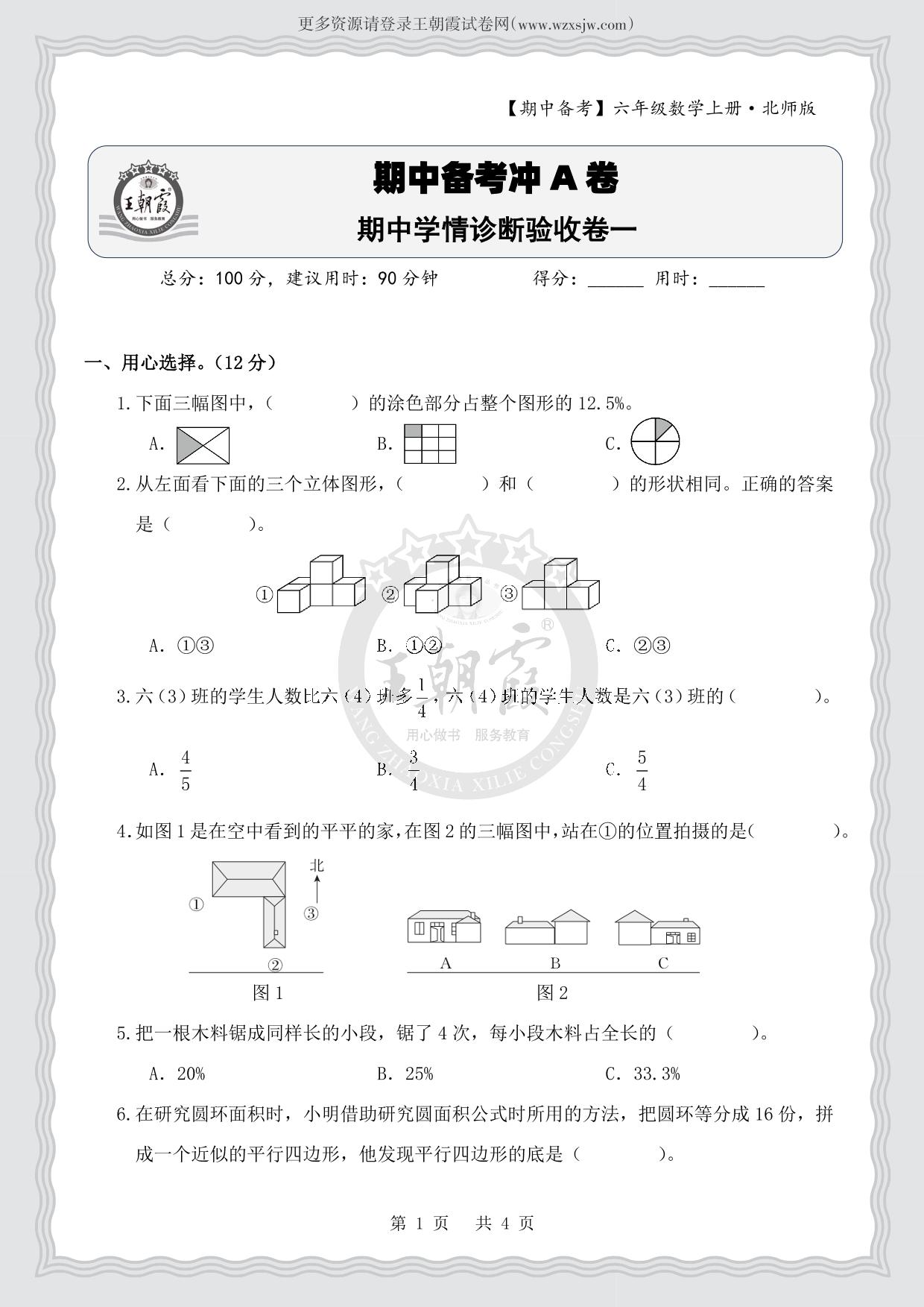 【期中备考】六年级数学上册北师版·期中学情诊断验收卷一