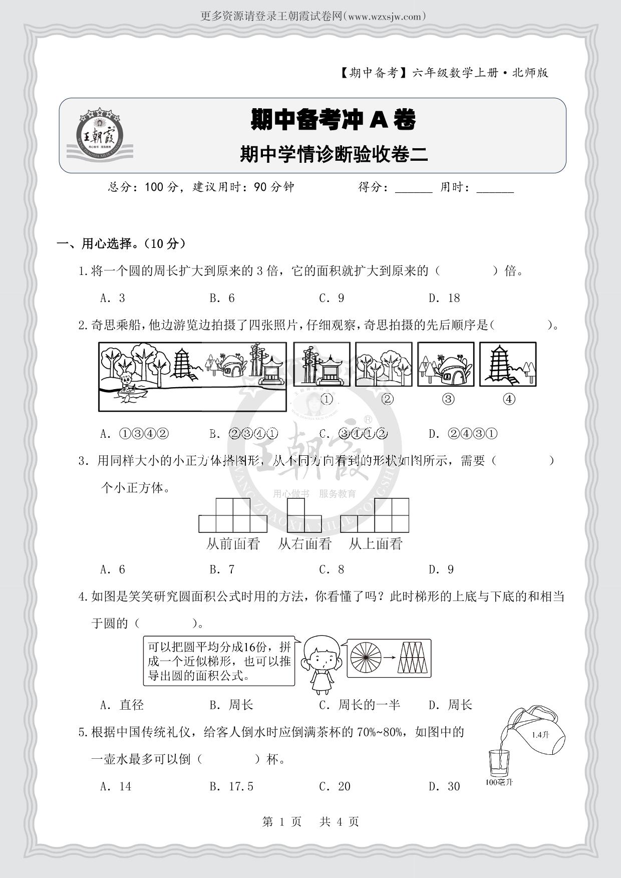 六年级数学北师版上册期中卷