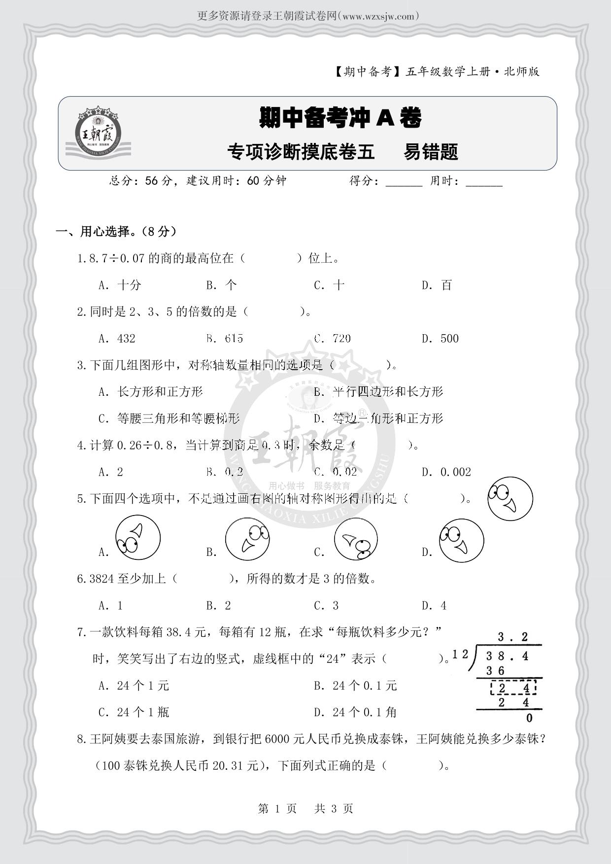 五年级数学北师版上册专项卷