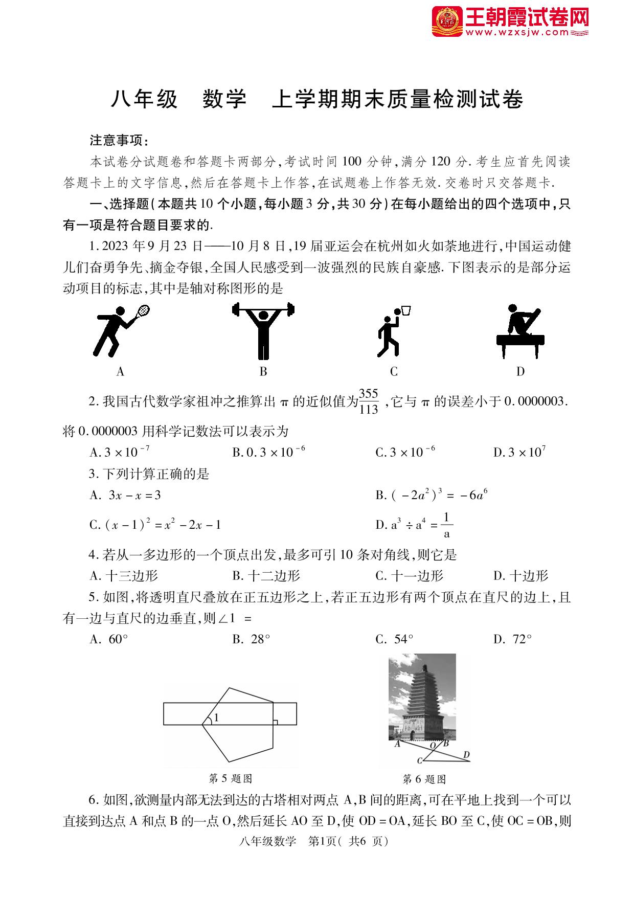 河南省郑州市巩义市2023-2024学年上学期期末质量检测试卷八年级数学(人教版)