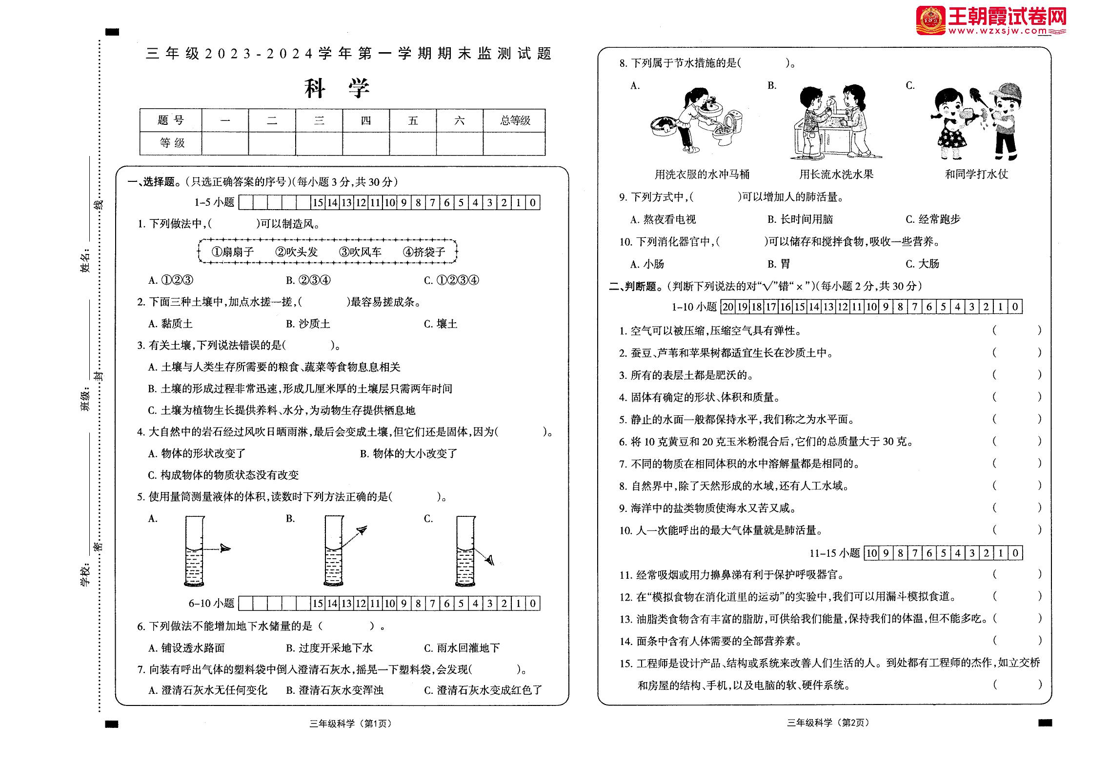 山西省大同市2023-2024学年第一学期期末监测试题三年级科学(苏教版)