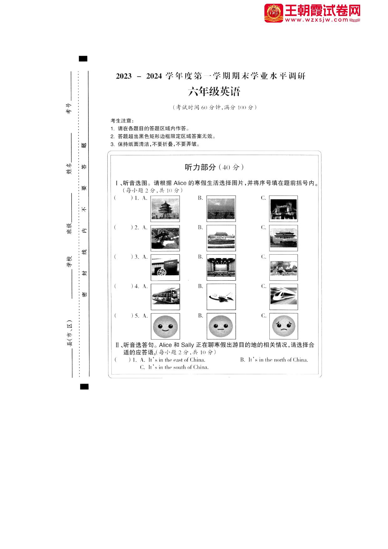 山西省晋城市2023-2024学年度第一学期期末学业水平调研六年级英语(沪教版)