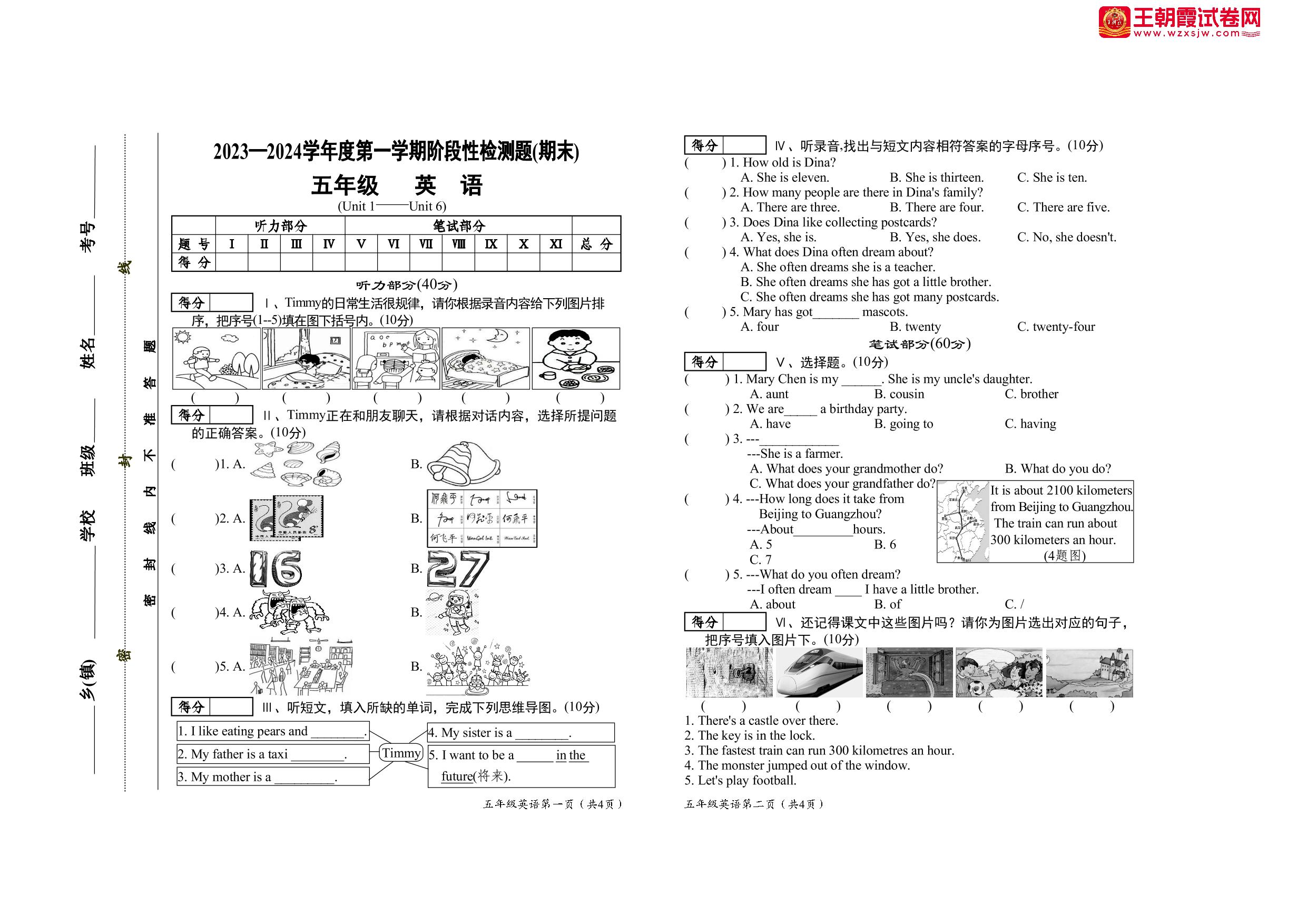 五年级英语外研版(三起始)上册期末卷