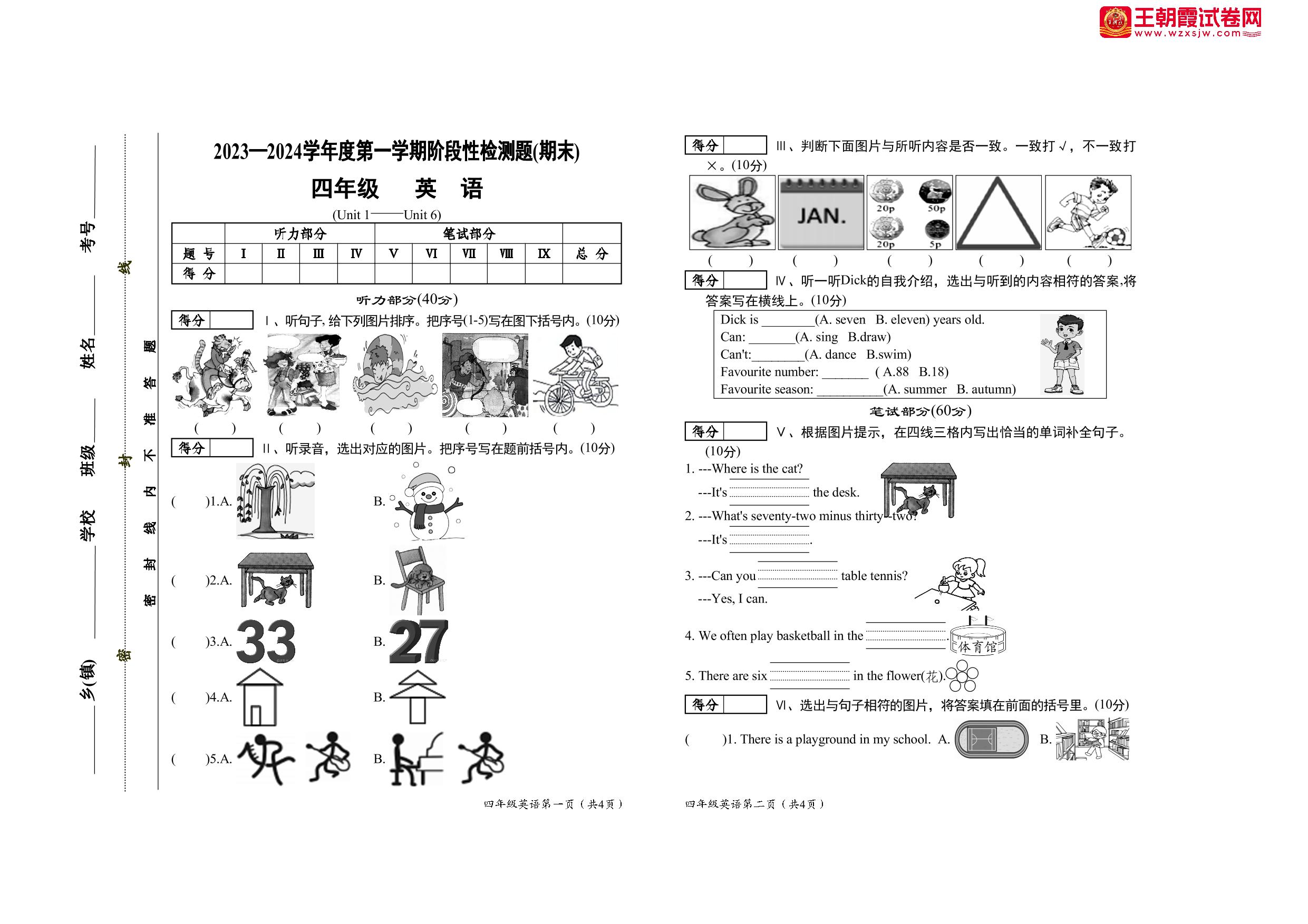 四年级英语外研版(三起始)上册期末卷