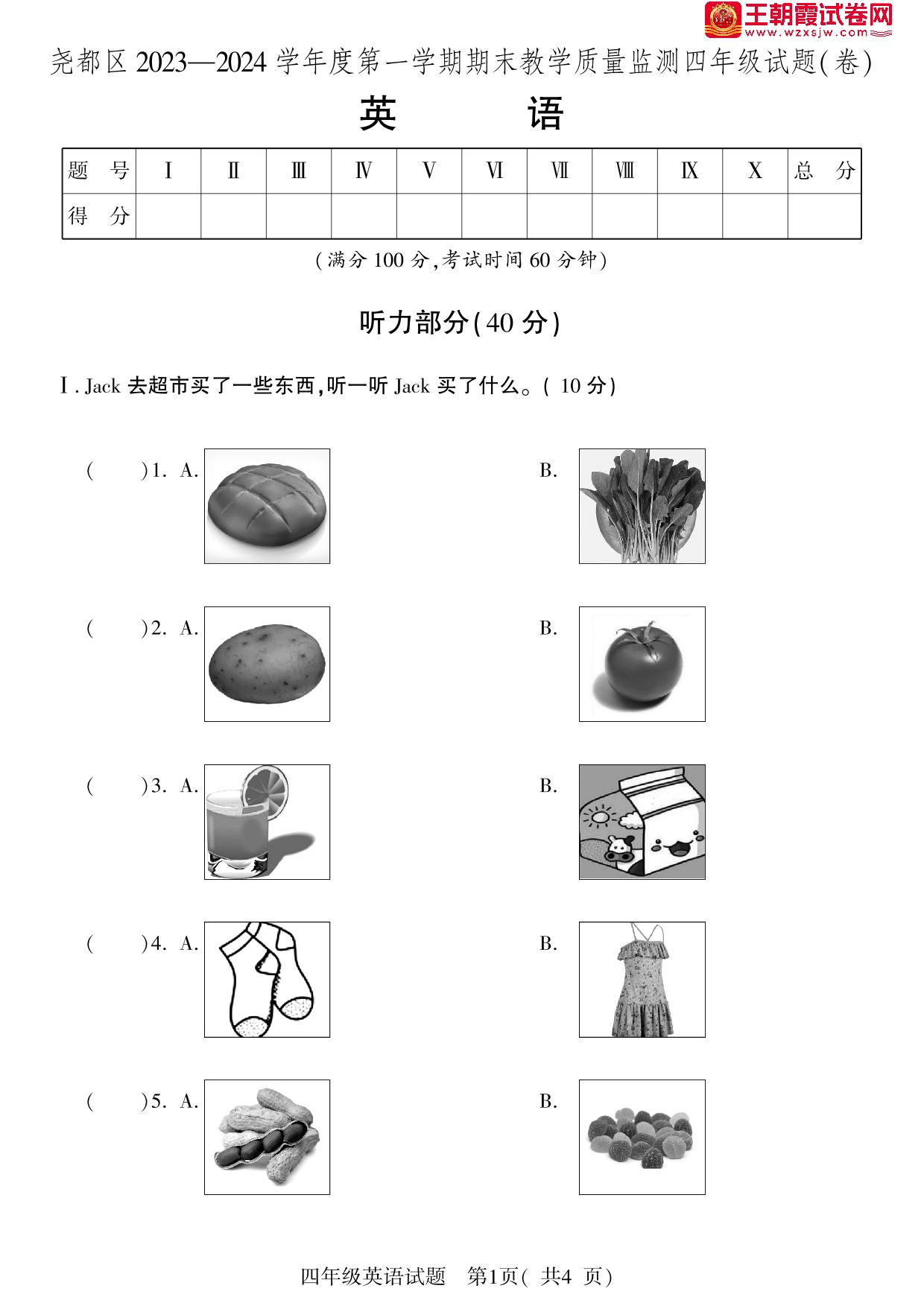 山西省临汾市尧都区2023-2024学年度第一学期期末教学质量监测四年级英语(外研版)【无听力音频】