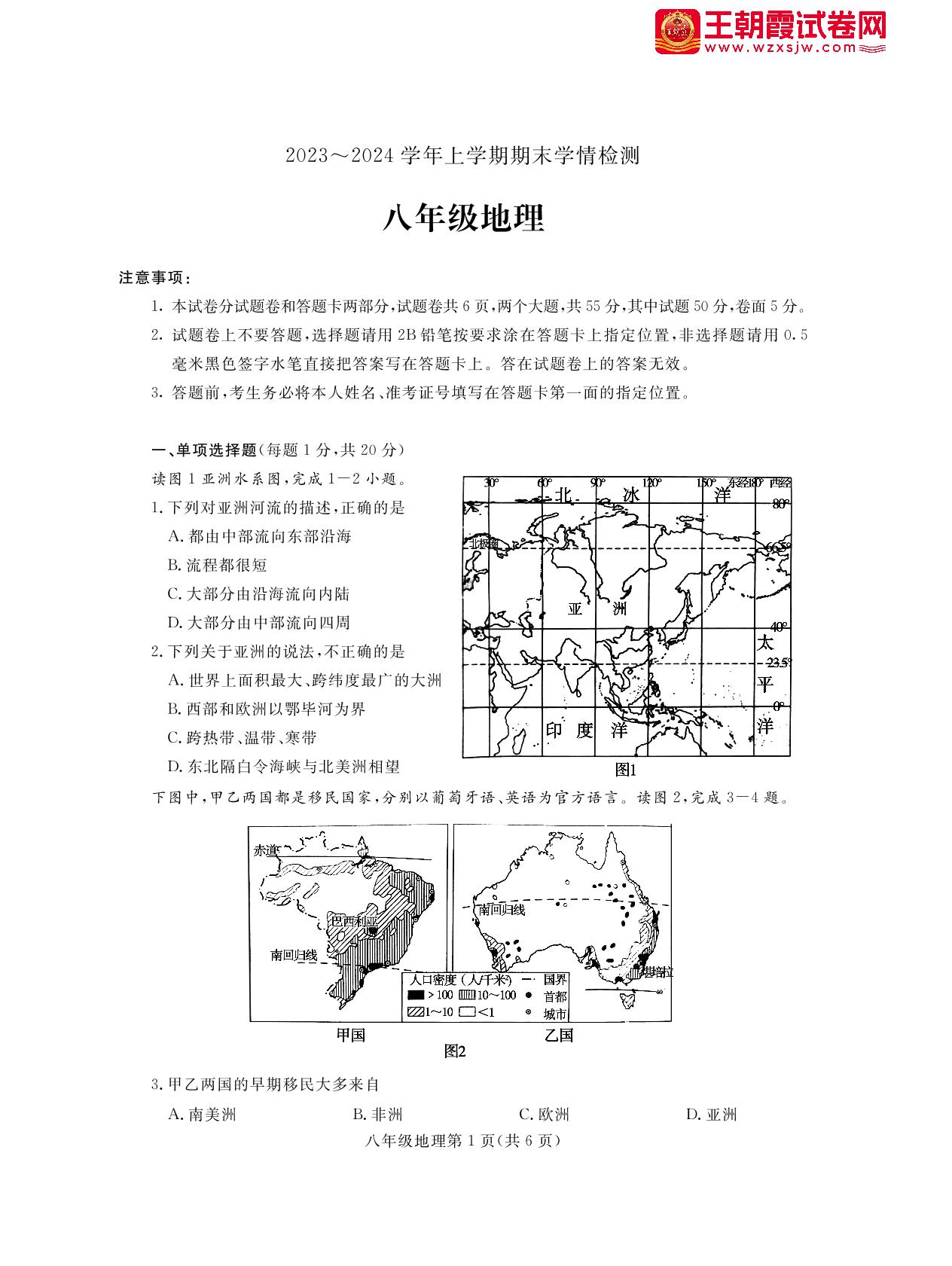 八年级地理中图版上册期末卷