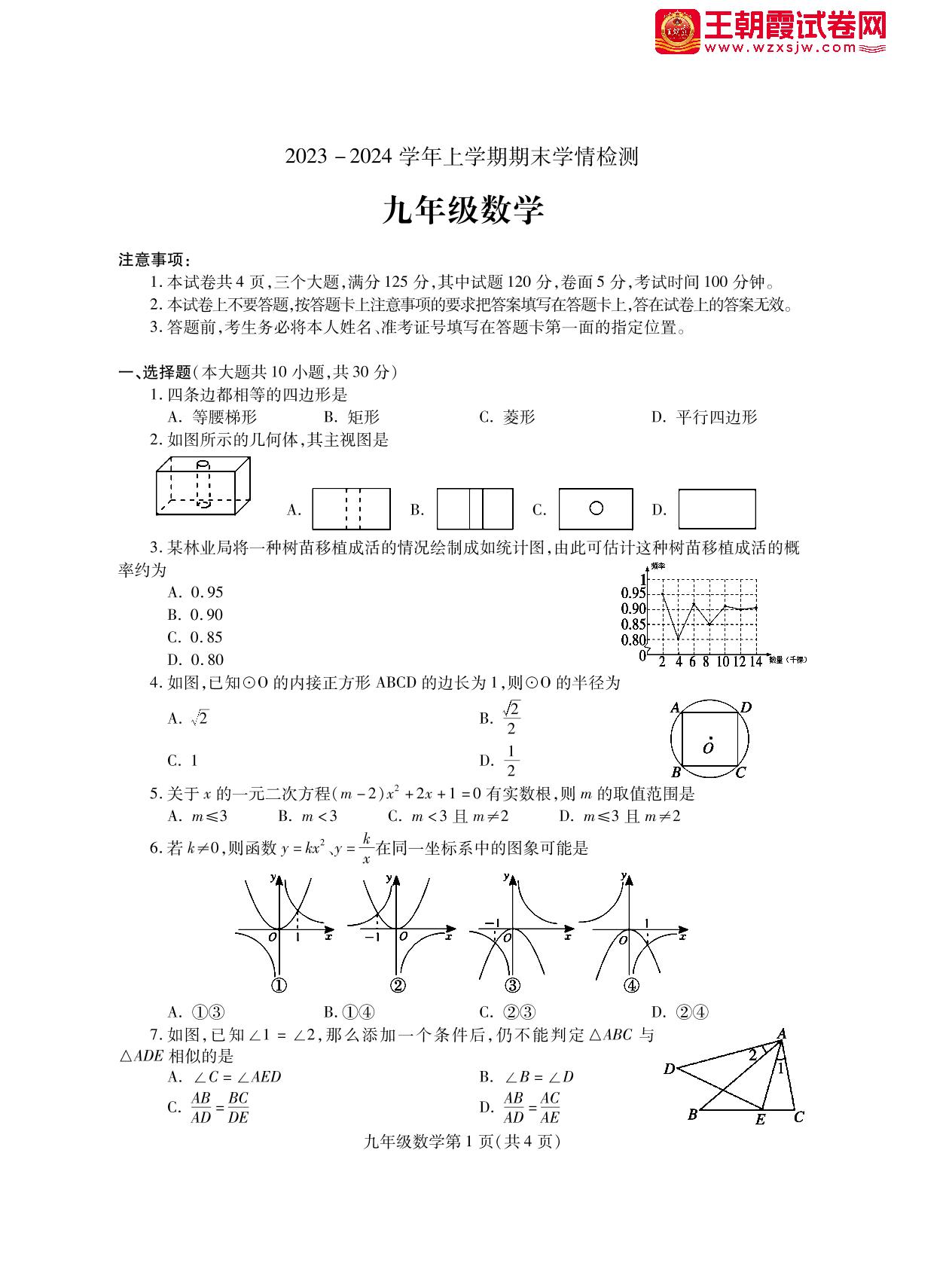 九年级数学北师版上册期末卷