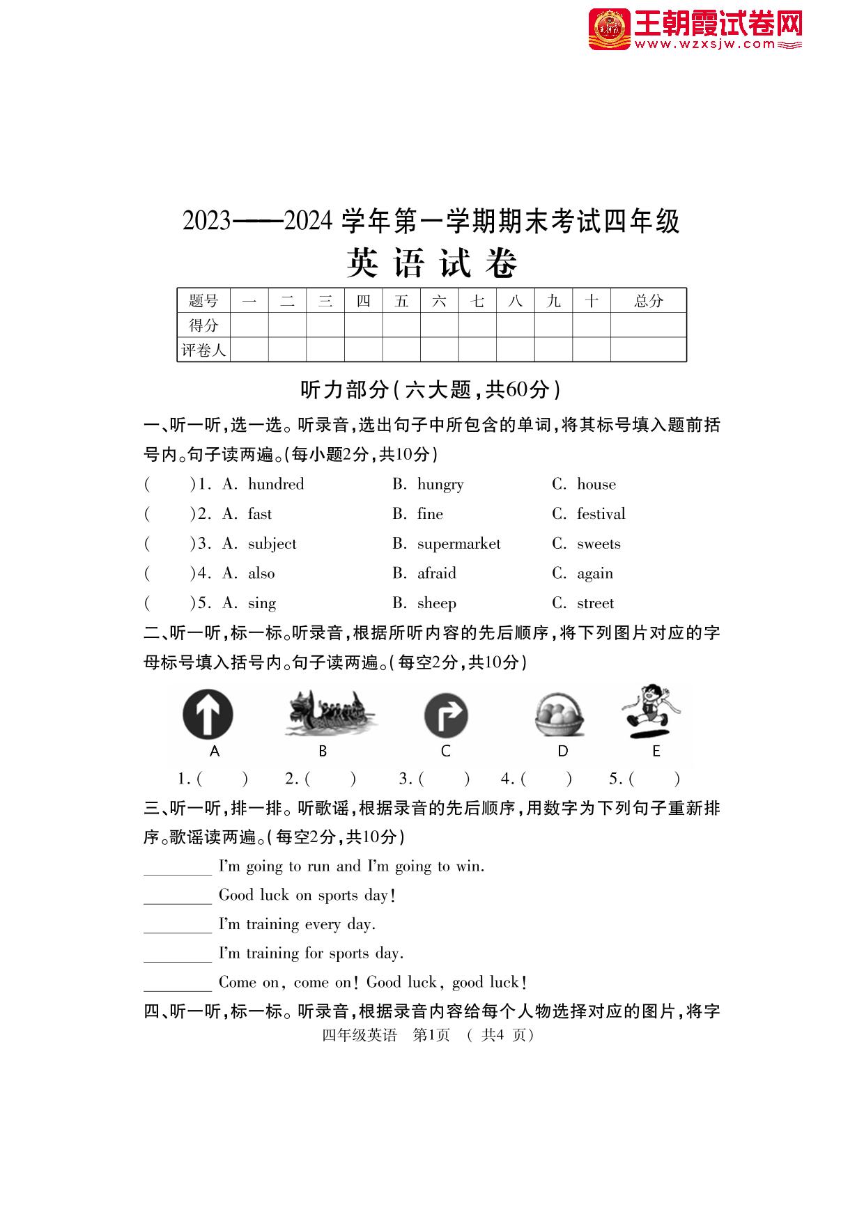 四年级英语外研版(三起始)上册期末卷
