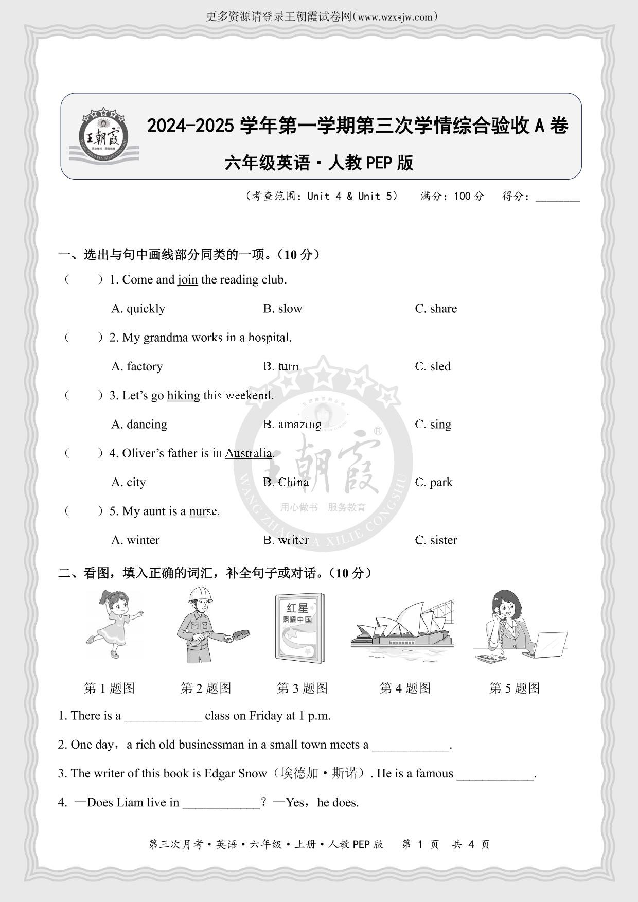 六年级英语人教版上册月考卷