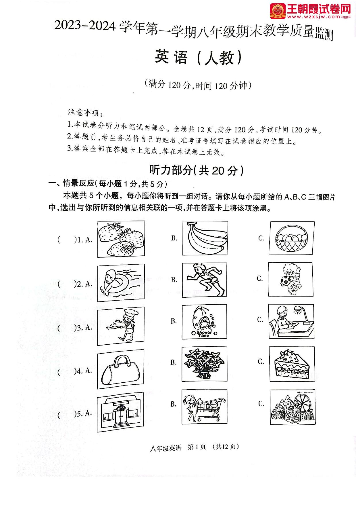 山西省临汾市襄汾县杏园中学2023-2024学年第一学期期末教学质量监测八年级英语(人教版)【无听力音频】