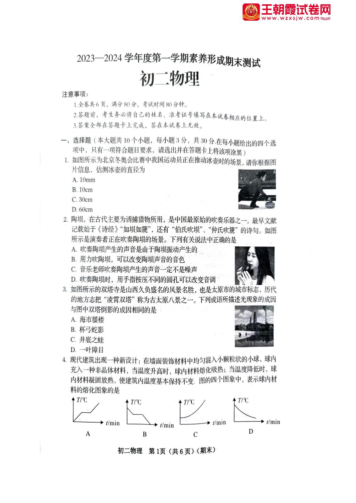 山西省临汾市襄汾县2023-2024学年度第一学期素养形成期末测试八年级物理(人教版)