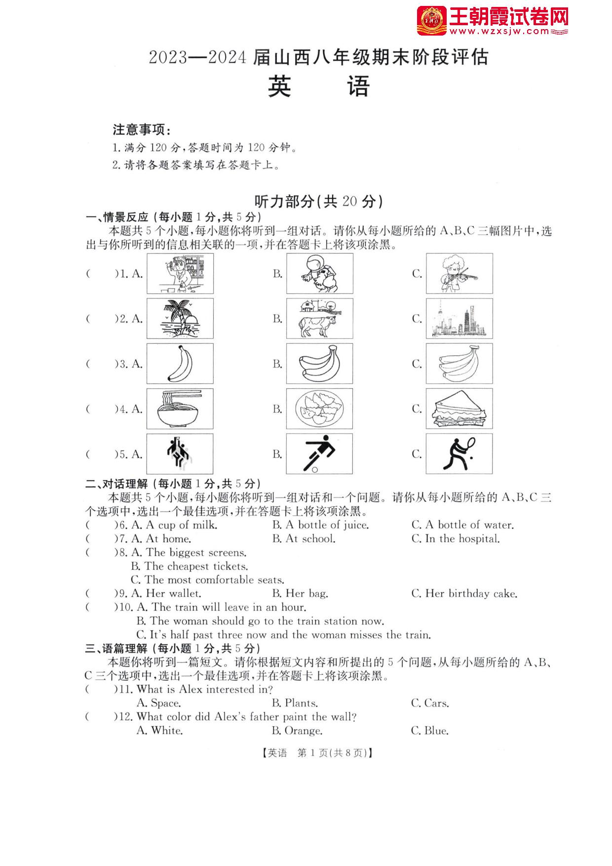 山西省朔州市2023-2024学年上学期期末阶段评估八年级英语(人教版)