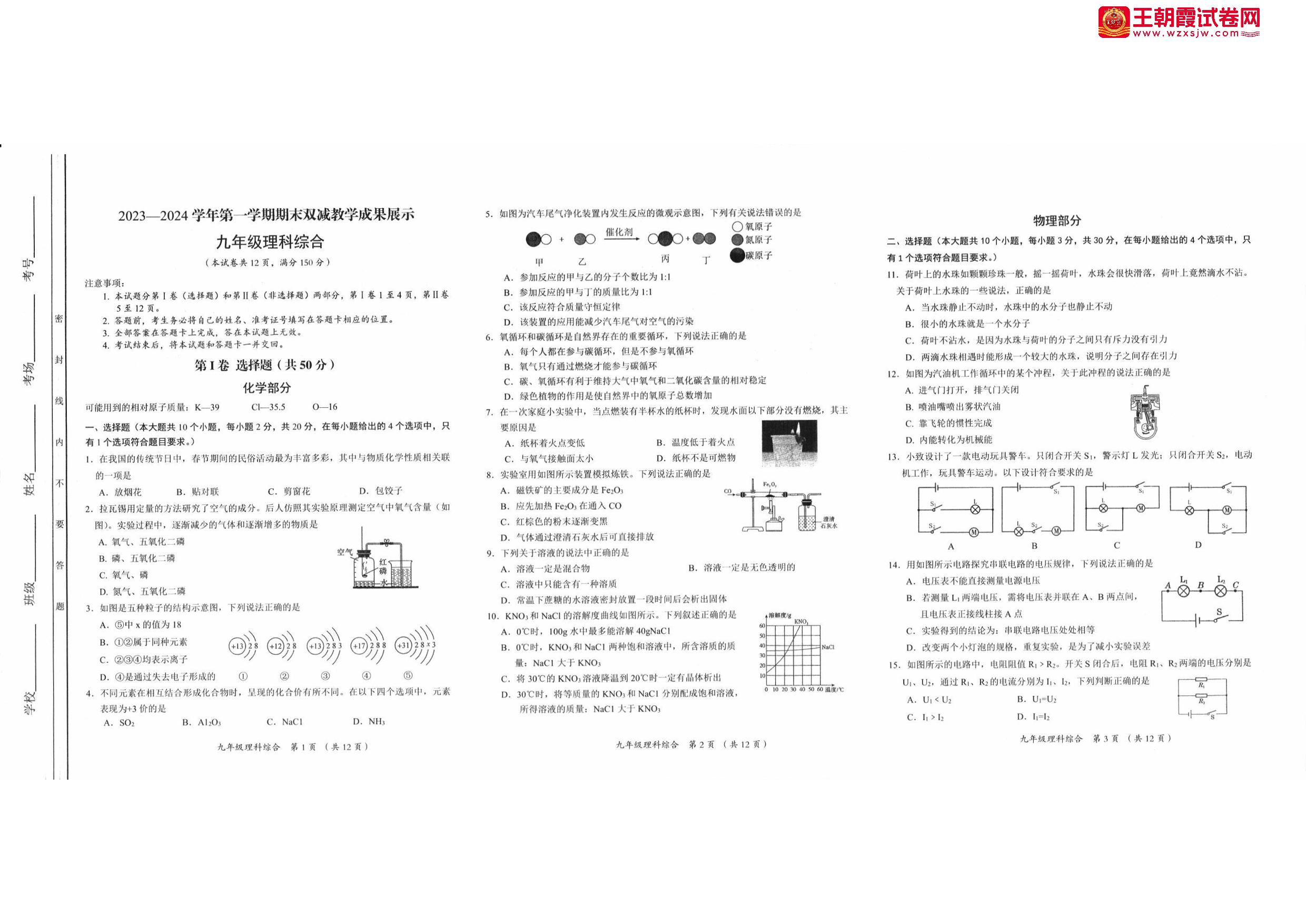 山西省忻州市2023-2024学年第一学期期末双减教学成果展示九年级化学、物理综合试卷(人教版)
