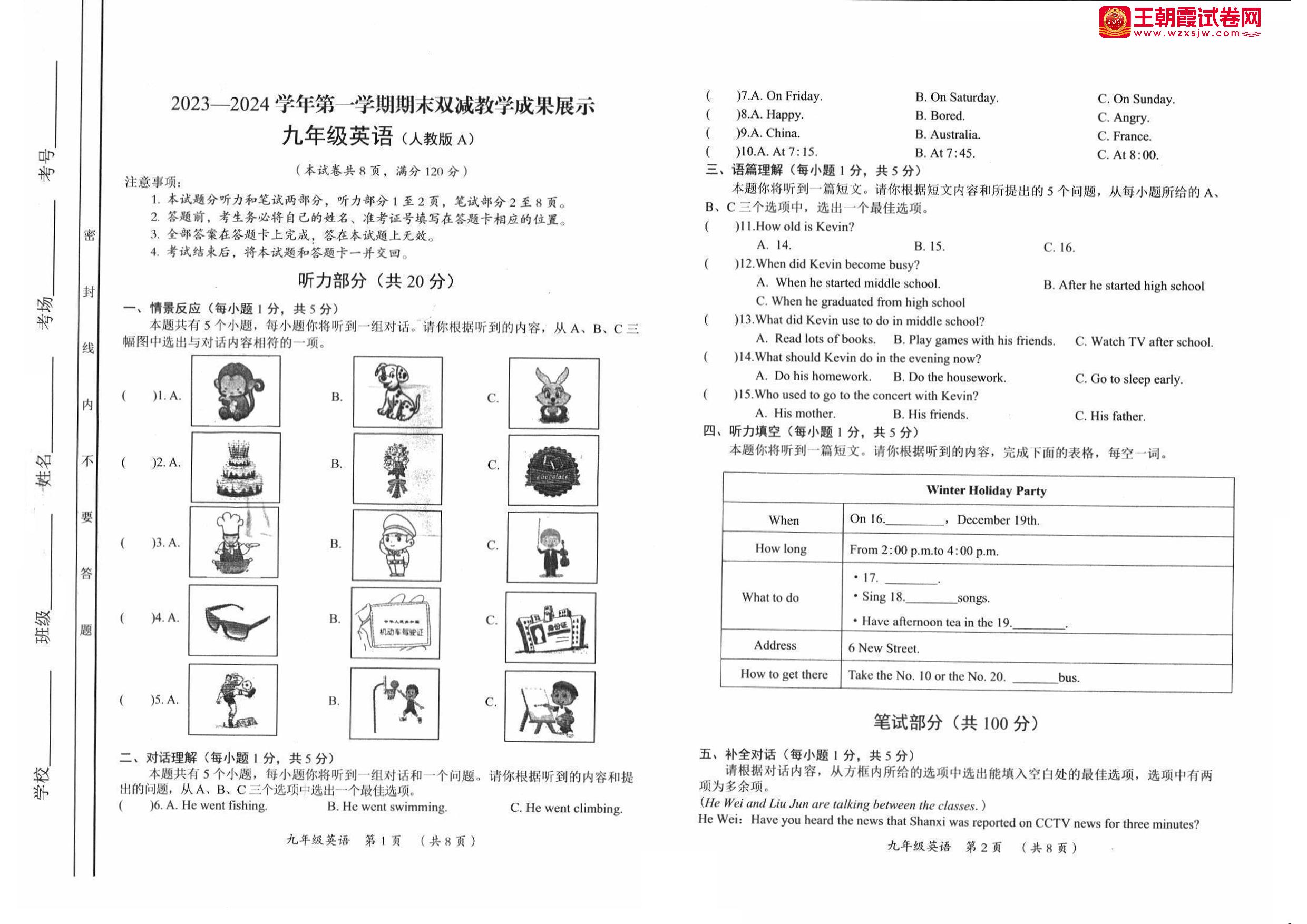 山西省忻州市2023-2024学年第一学期期末双减教学成果展示九年级英语(人教版)