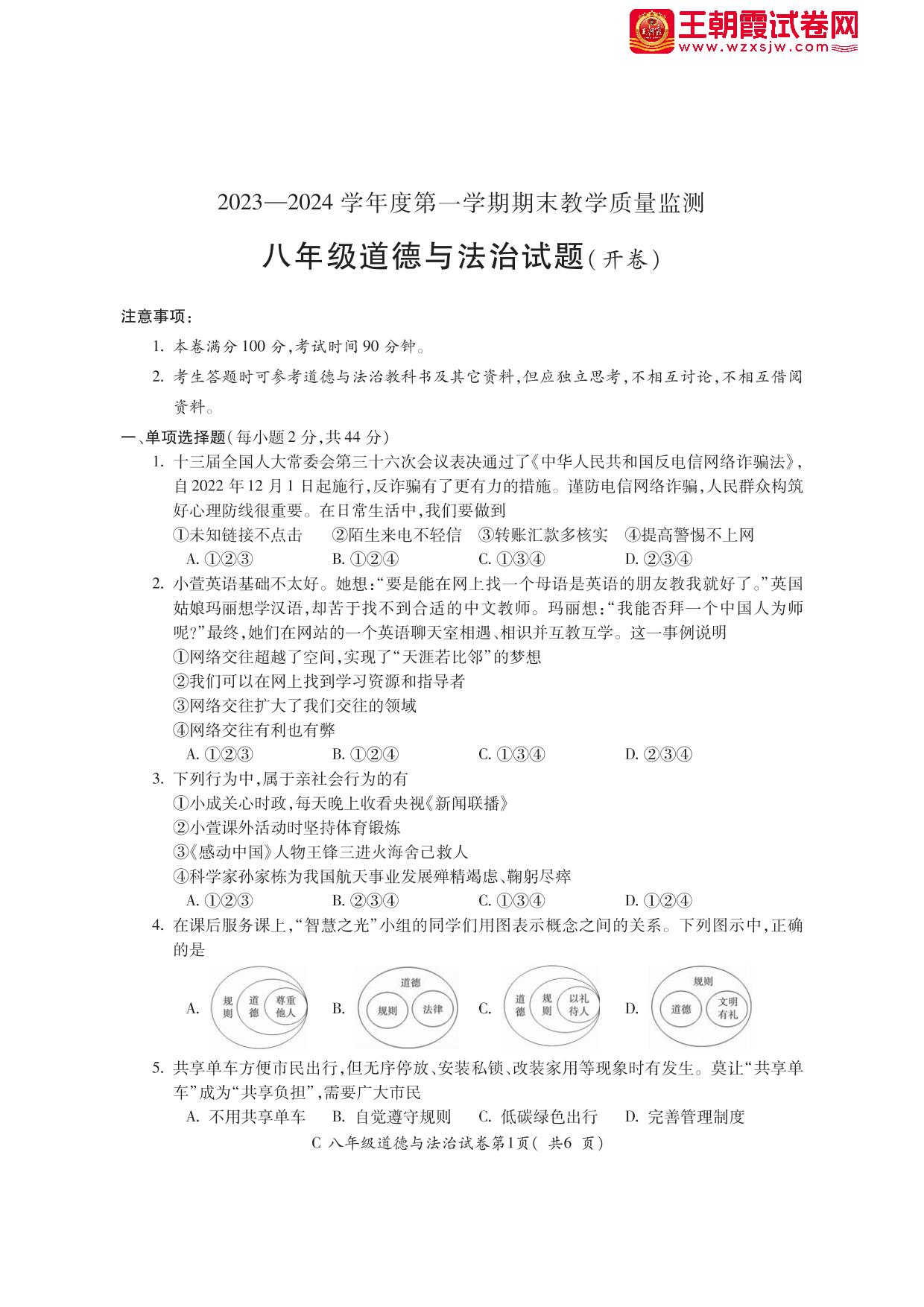 安徽省宣城市2023-2024学年度第一学期期末教学质量监测八年级道德与法治(人教版)