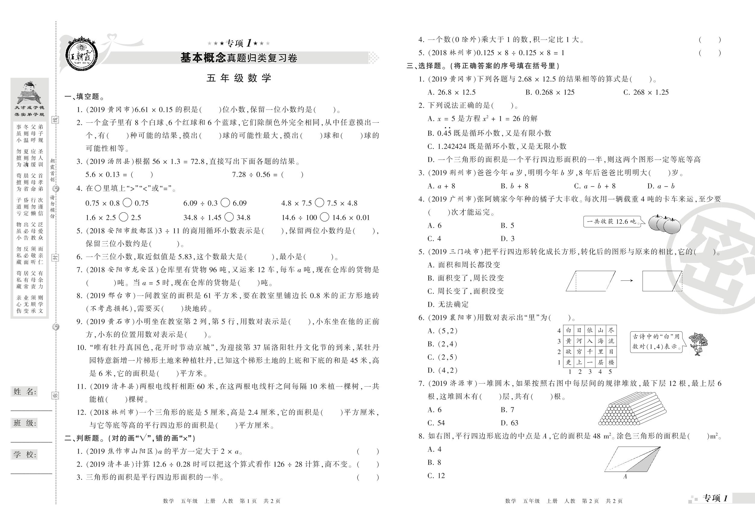 王朝霞期末专项卷——基本概念、计算真题归类复习五年级上册数学(人教版)_R210804173139【0】