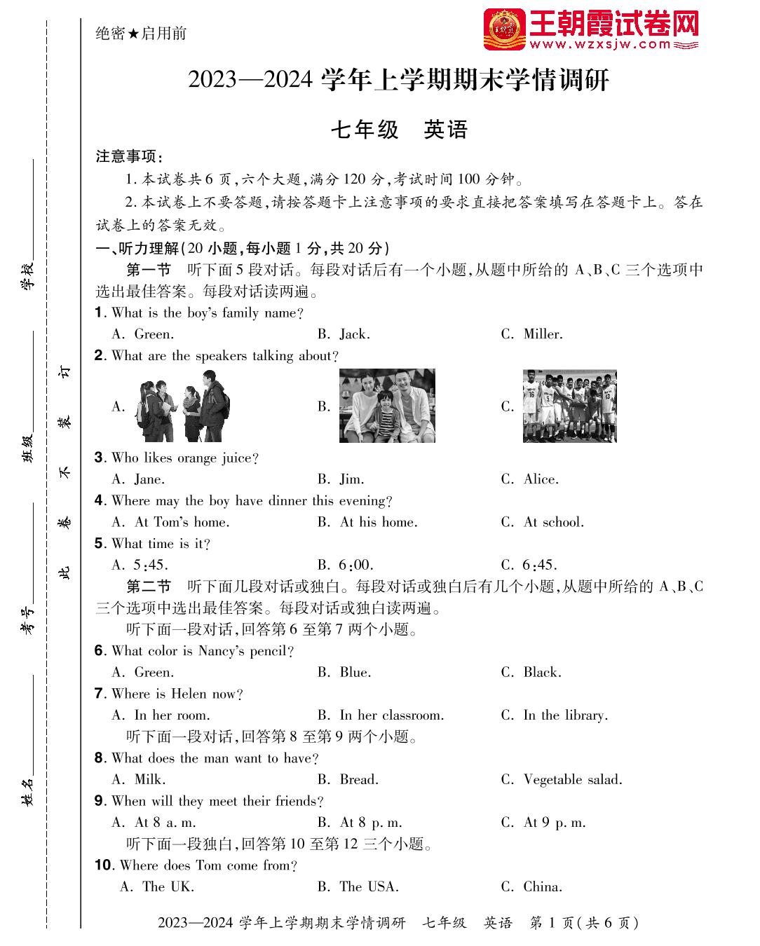 河南省洛阳市嵩县2023-2024学年上学期期末学情调研七年级英语(新课标版)【无听力音频】