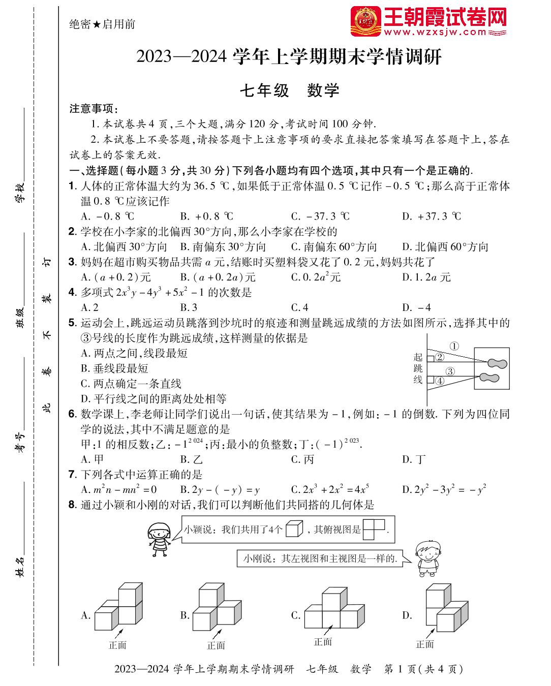 河南省洛阳市嵩县2023-2024学年上学期期末学情调研七年级数学(华师版)