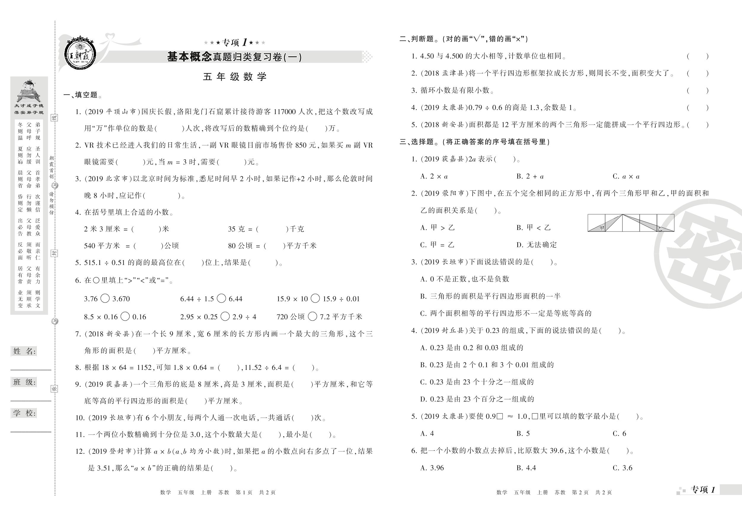 王朝霞期末专项卷——基本概念真题归类复习五年级上册数学(苏教版)_R210804173208【0】