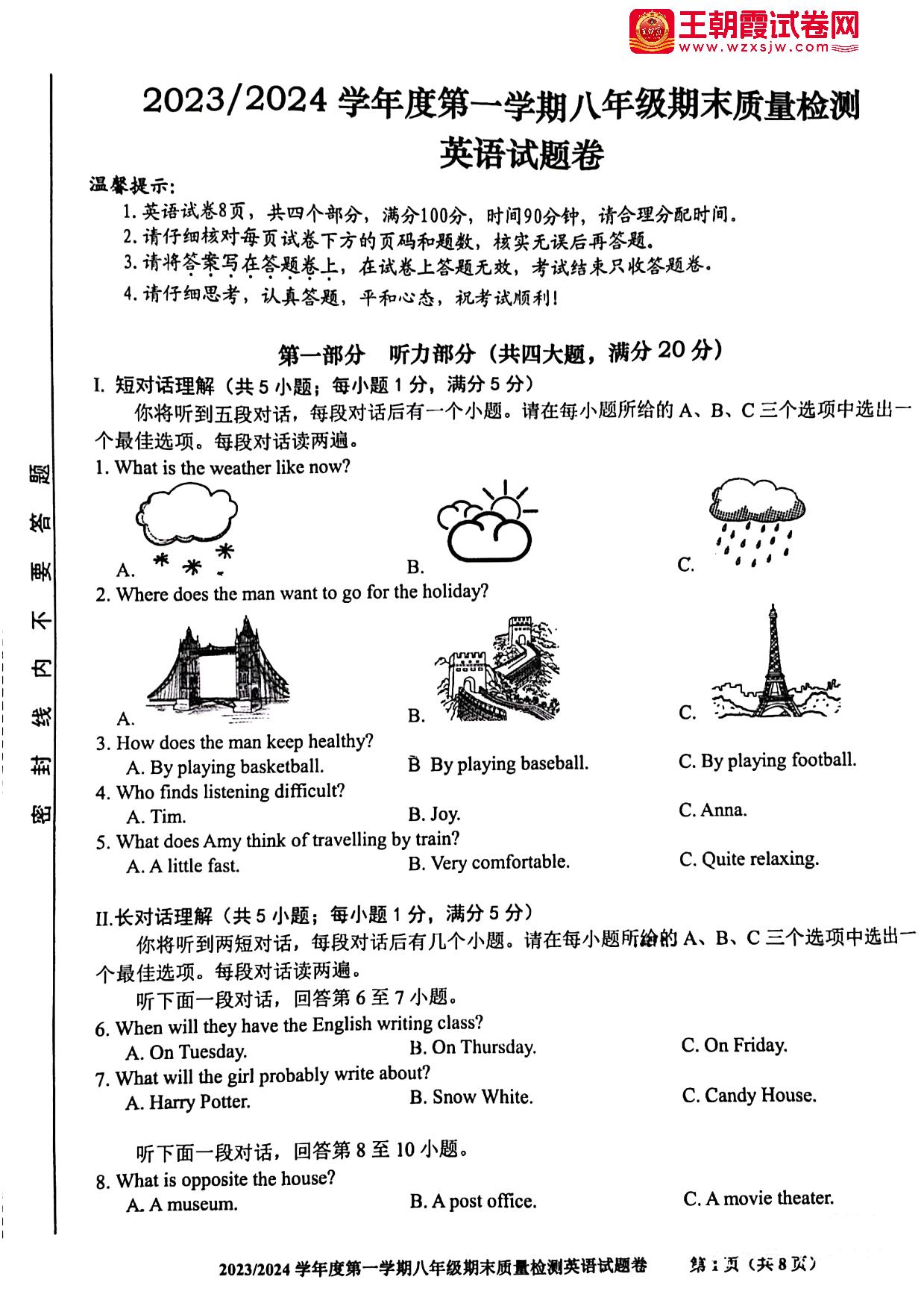 八年级英语人教版上册期末卷