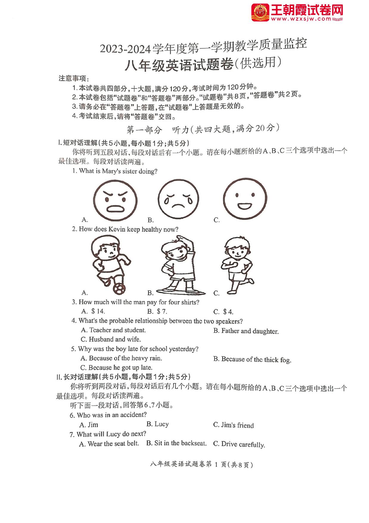 安徽省芜湖市弋江区2023-2024学年度第一学期期末教学质量监控八年级英语(译林版)