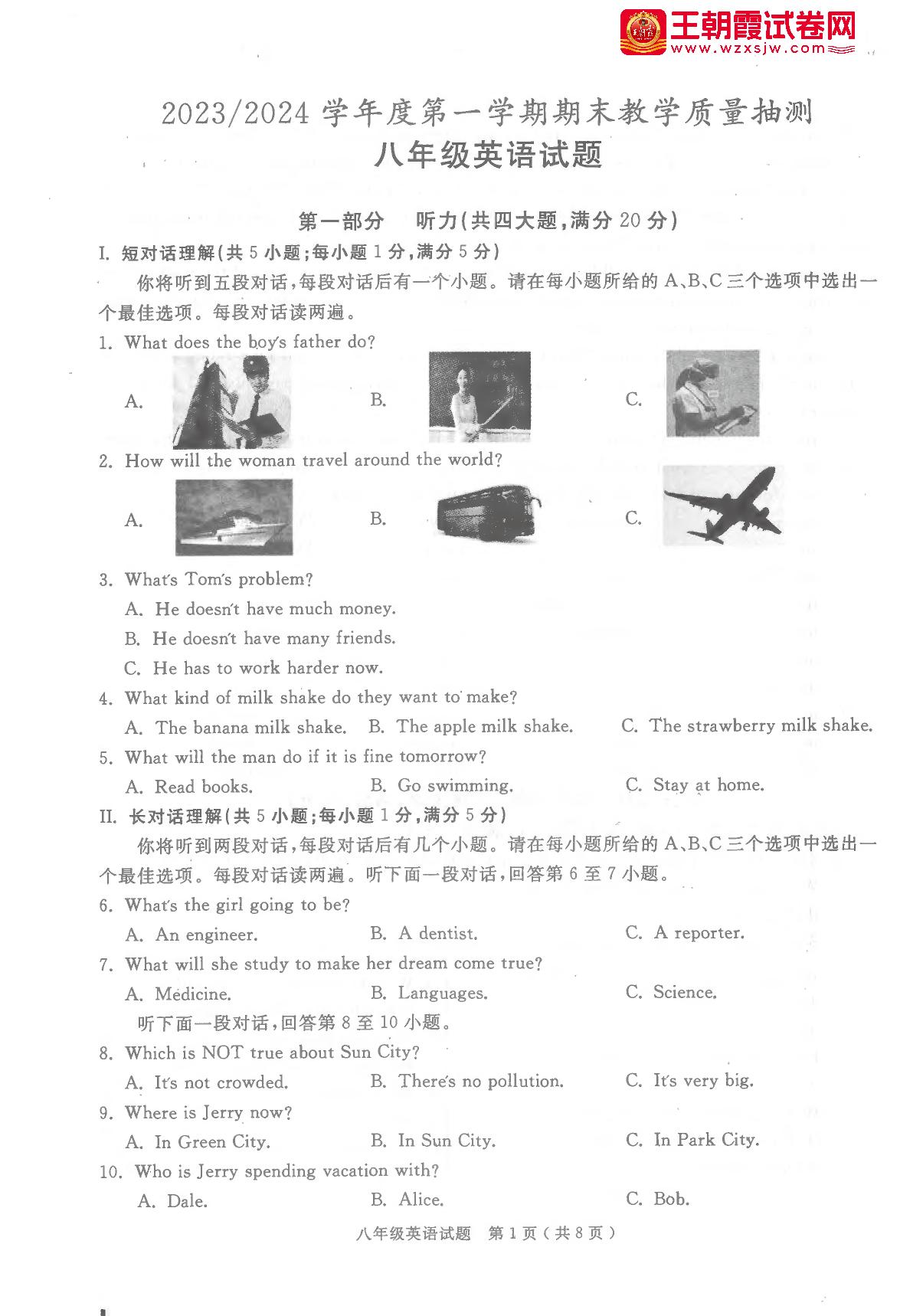 安徽省合肥市庐江县2023-2024学年度第一学期期末教学质量抽测八年级英语(人教版)
