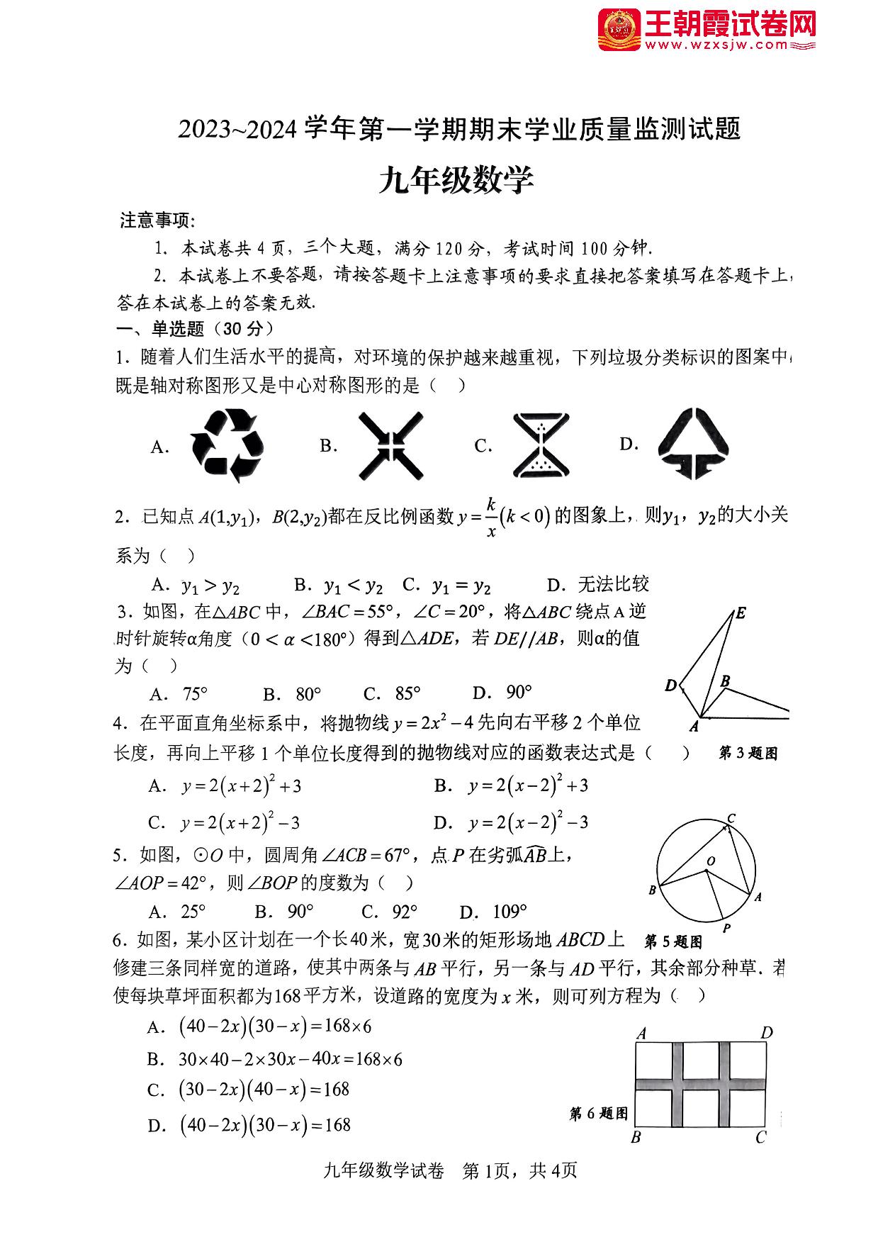 河南省安阳市文峰区2023-2024学年第一学期期末学业质量监测试题九年级数学(人教版)