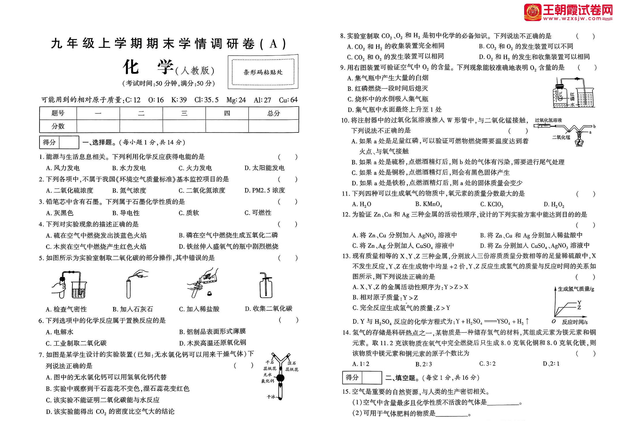 九年级化学人教版上册期末卷