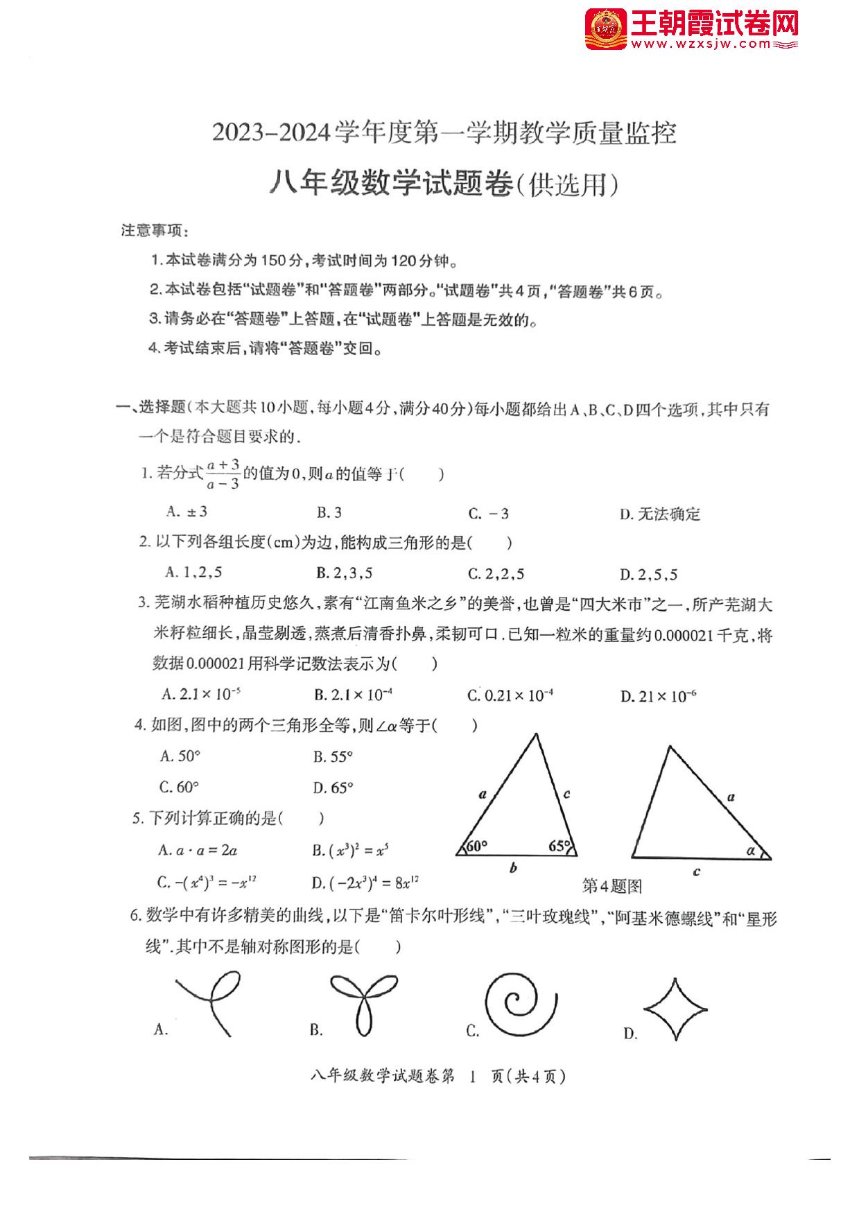 安徽芜湖市弋江区2023-2024第一学期期末教学质量监控八年级数学(人教版)
