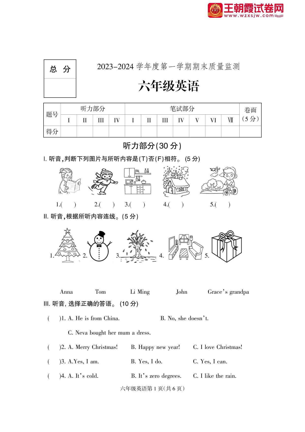 六年级英语冀教版上册期末卷