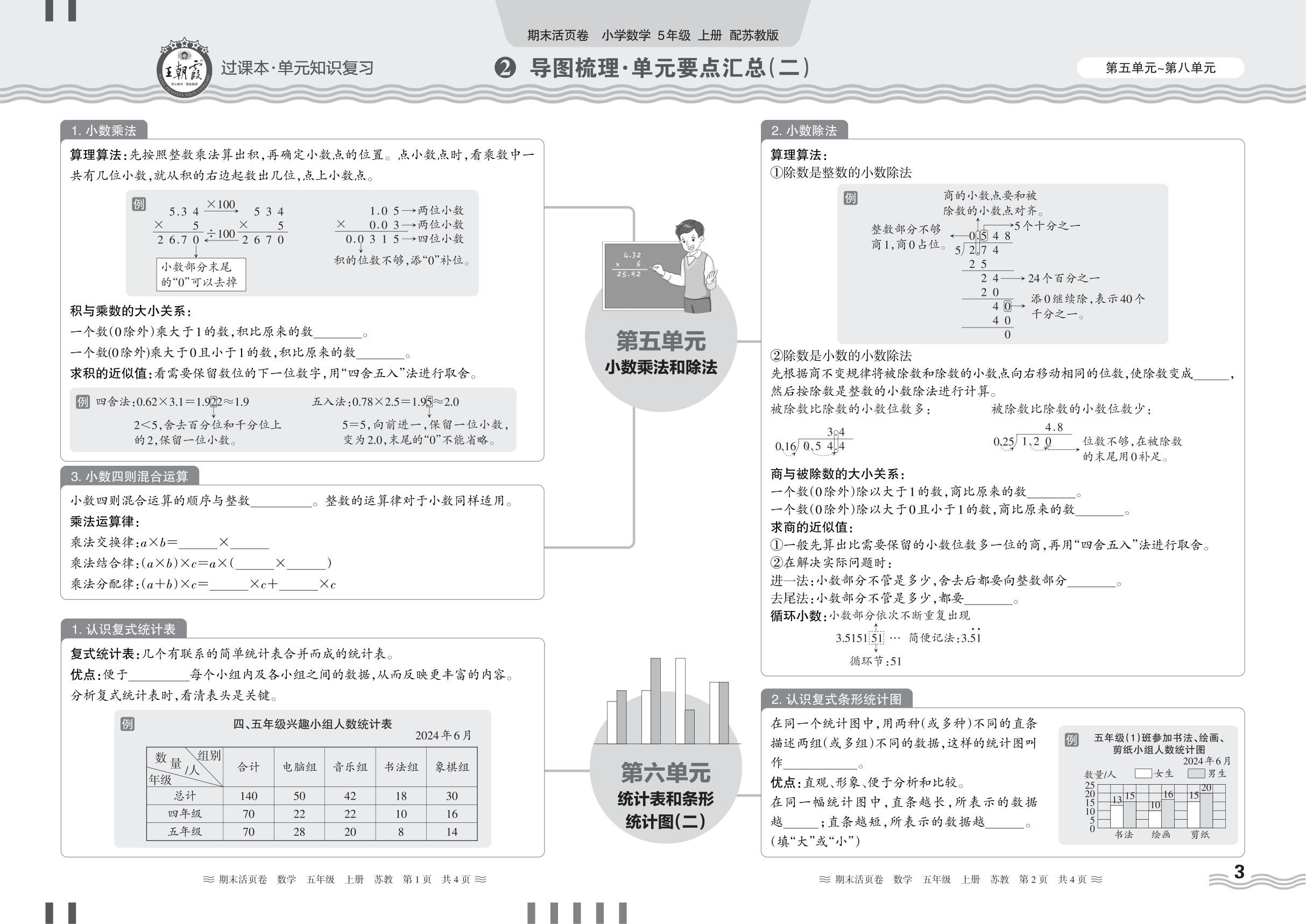 2024秋上册五年级数学苏教版 期末过课本HY版·导图梳理·单元要点汇总(第五单元~第八单元)
