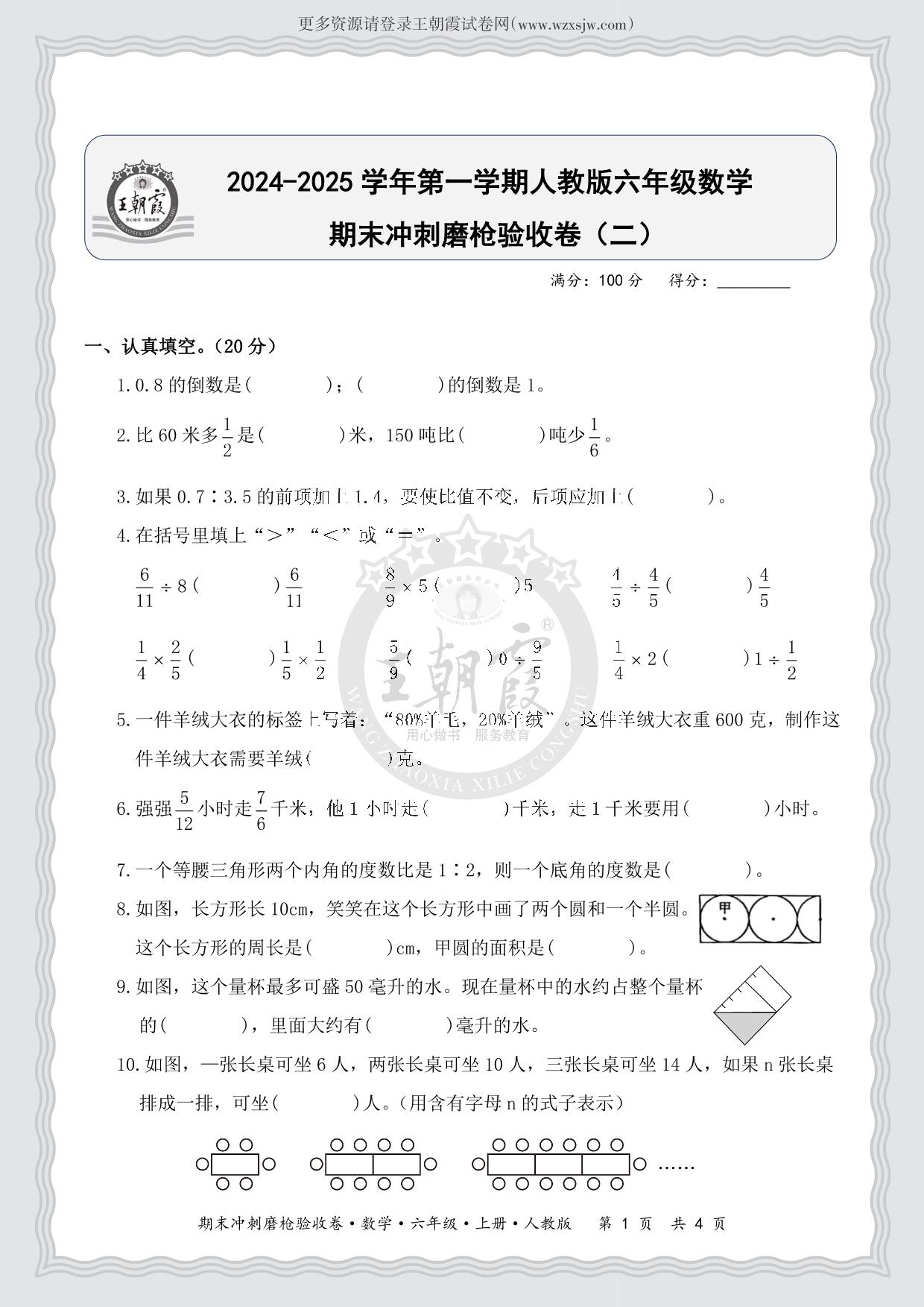 2024-2025学年第一学期六年级数学期末冲刺磨枪验收卷(二)(人教版)