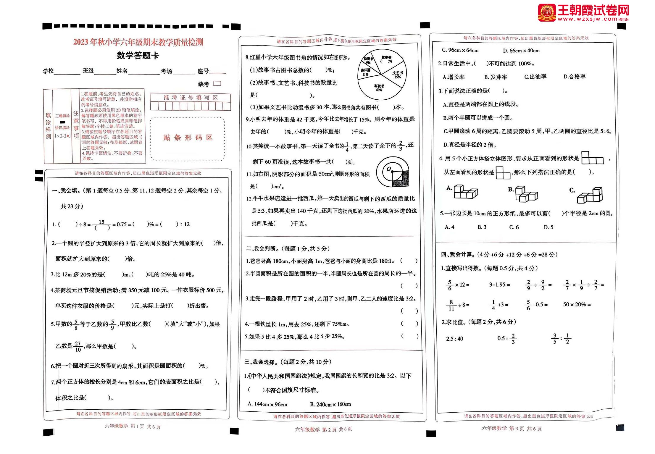 河南省驻马店市上蔡县2023-2024学年上学期期末教学质量检测六年级数学(北师版)