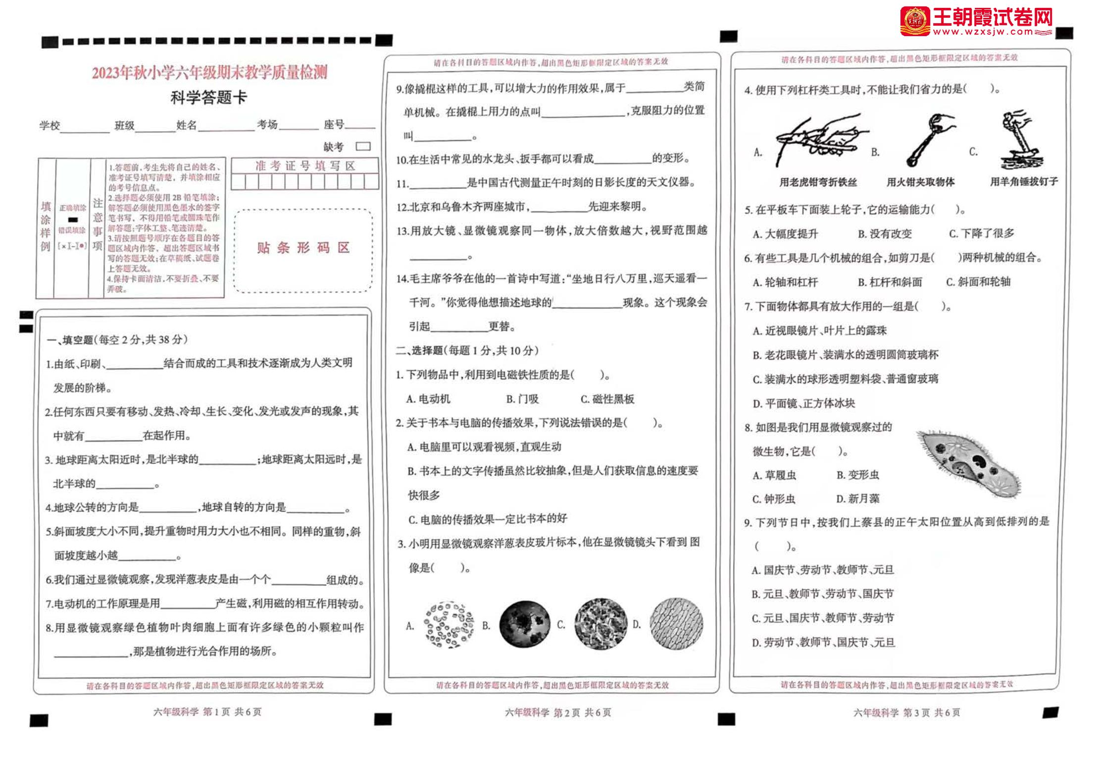 河南省驻马店市上蔡县2023-2024学年上学期期末教学质量检测六年级科学(教科版)