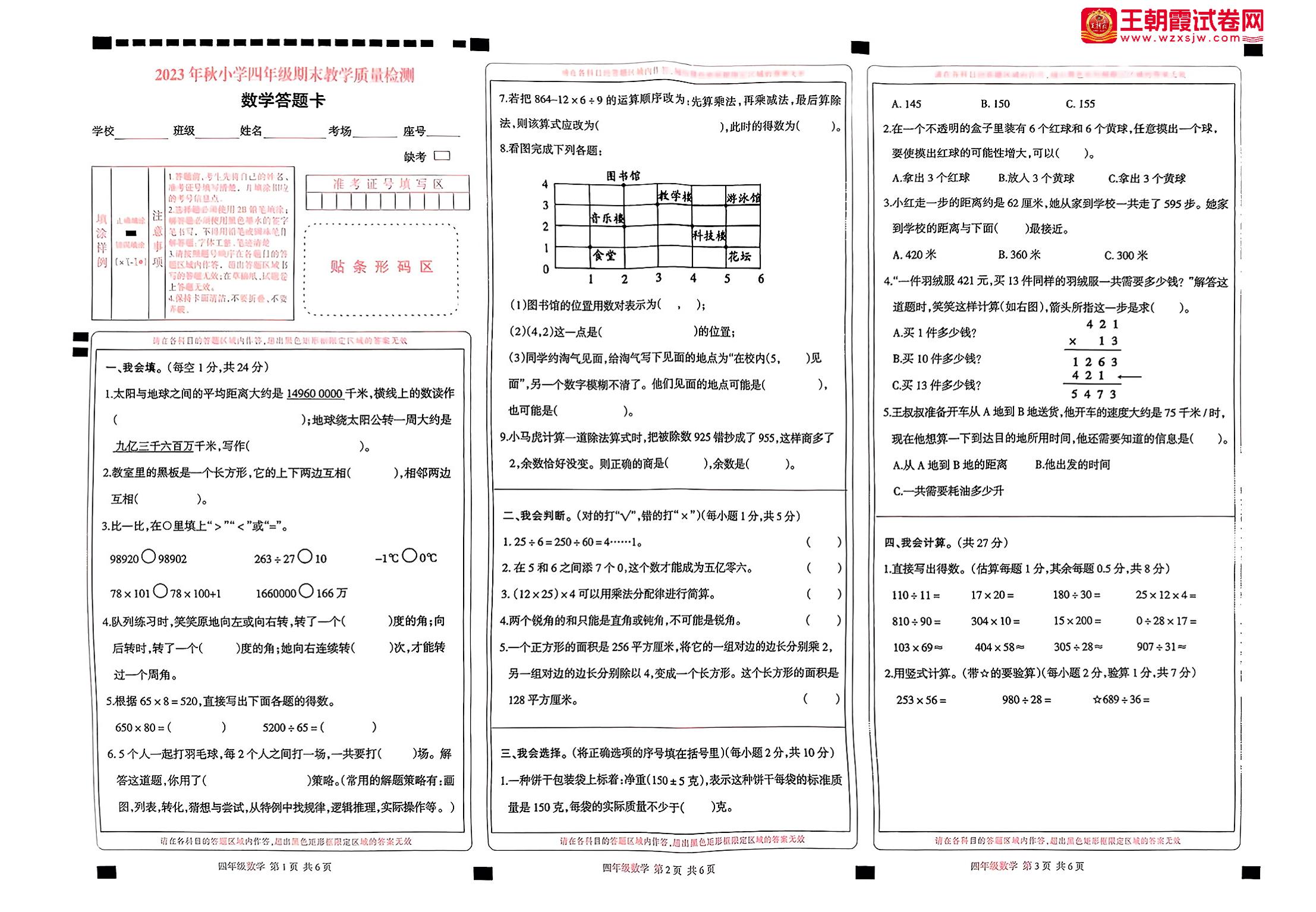 河南省驻马店市上蔡县2023-2024学年上学期期末教学质量检测四年级数学(北师版)