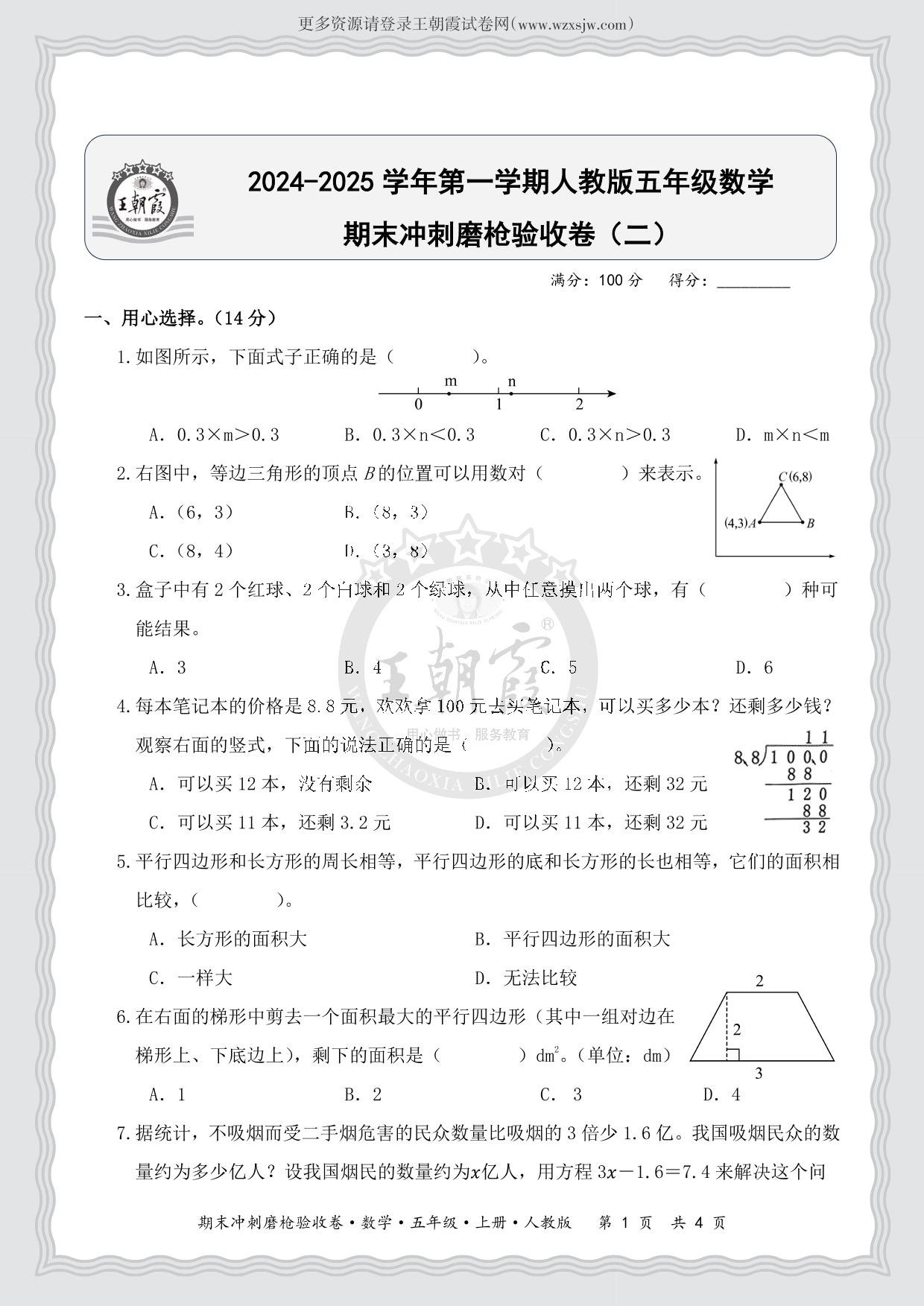 2024-2025学年第一学期五年级数学期末冲刺磨枪验收卷(二)(人教版)