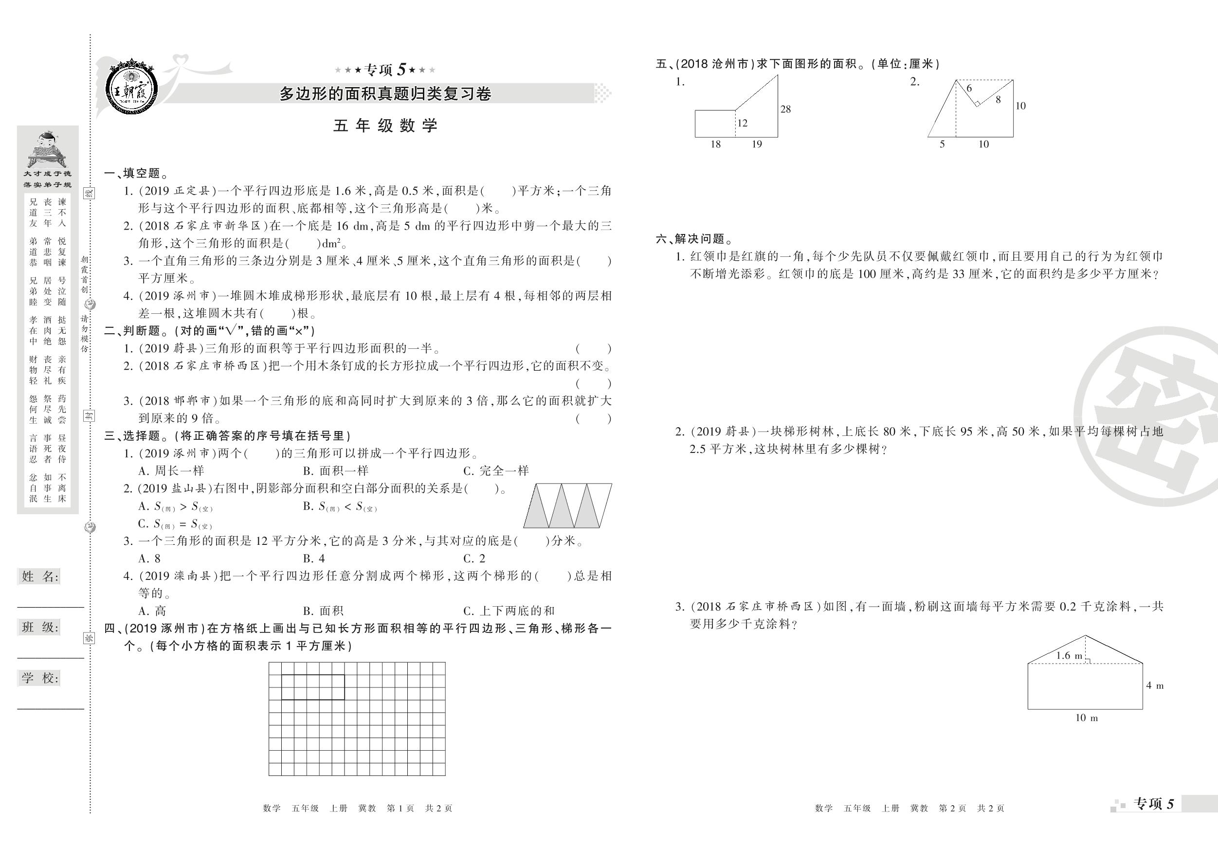 王朝霞期末专项卷——多边形的面积、方程真题归类复习五年级上册数学(冀教版)_R210804173558【0】